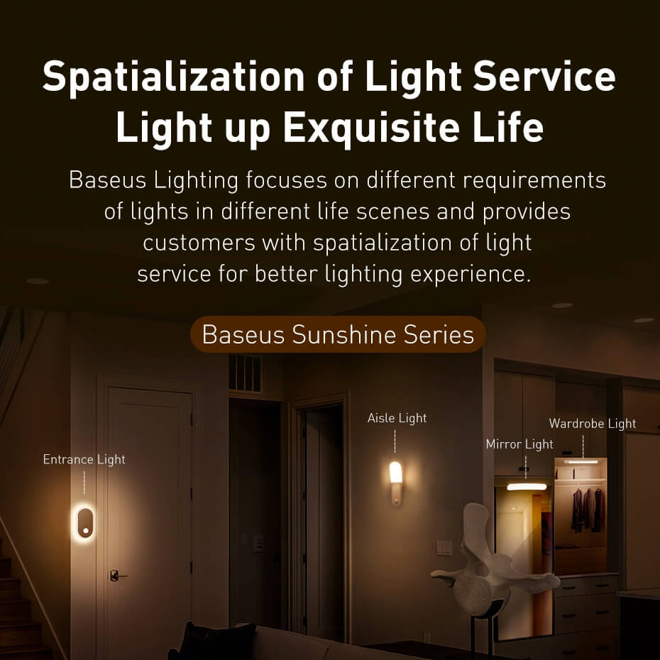 - 1 x Baseus Sunshine Series Human Body Induction Wardrobe Light - 1 x Baseus USB-C кабел