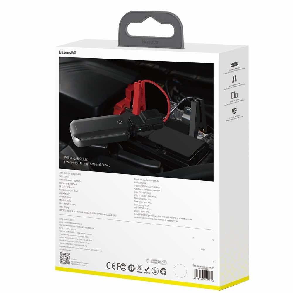 Baseus Super Energy Car Jump Starter 8000 mAh - външна батерия 8000 mAh с фенер и JumpStarter за автомобил (черен)