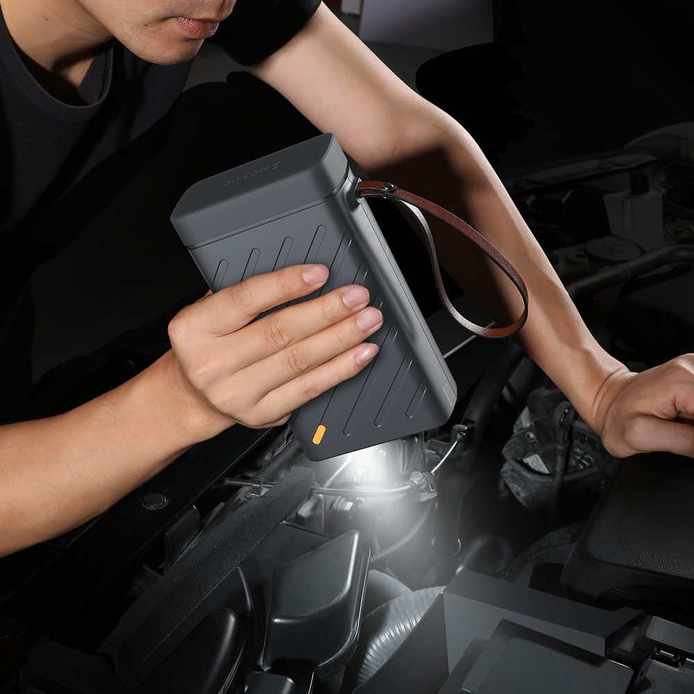 - С тази мултифункцинална батерия може да стартирате (запалите) вашия автомобил, да захраните малък електроуред, да заредите вашия смартфон и да имате LED светлина