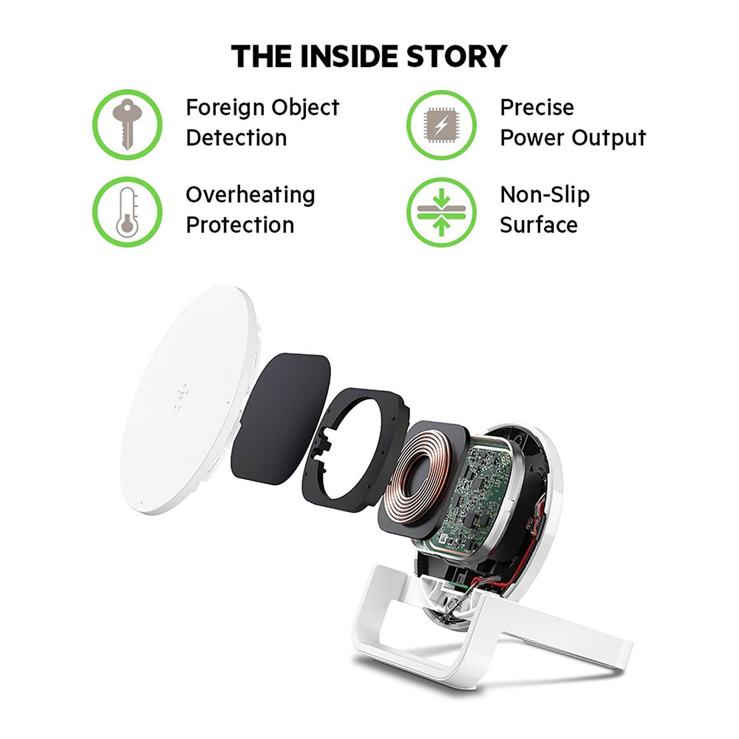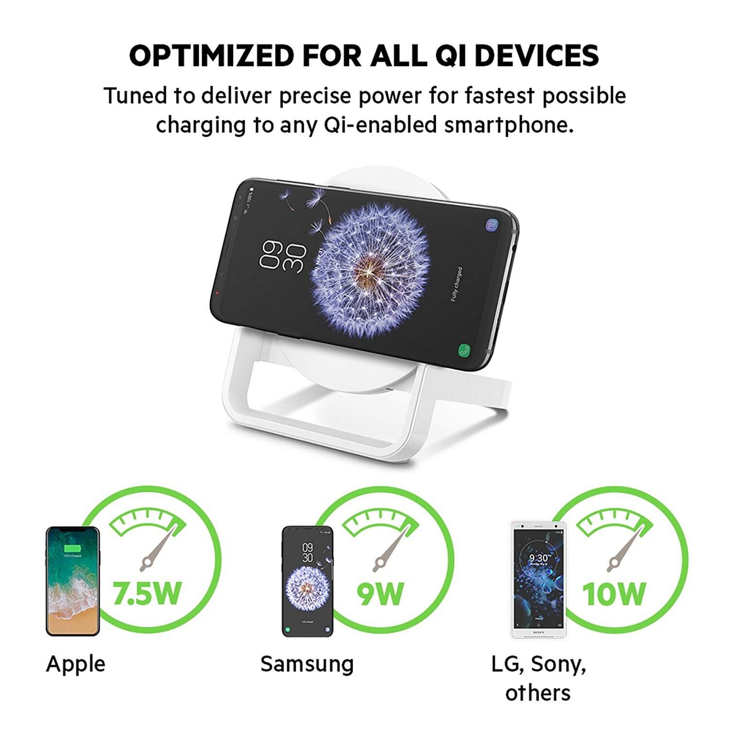 Belkin BOOST UP Wireless Charging Stand 10W - поставка (пад) за безжично захранване за Apple, Samsung, LG, Sony и други QI съвместими устройства (бял)