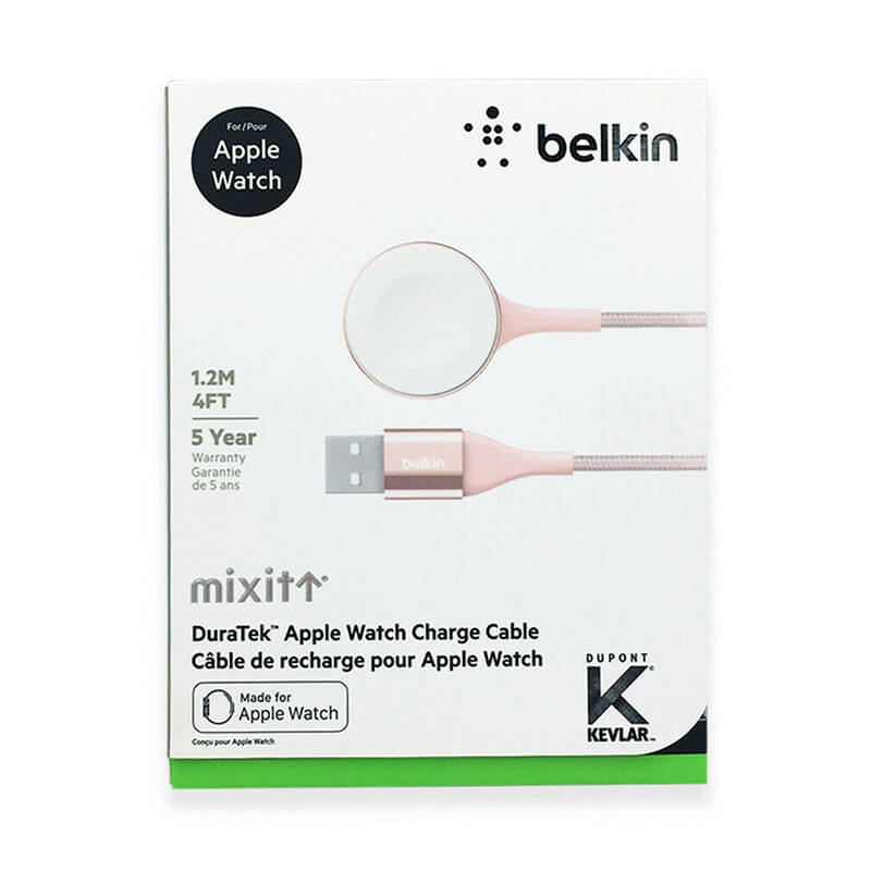 Belkin Mixit Duratek Premium Kevlar Watch Cable - здрав и устойчив кабел с оплетка от кевлар за Apple Watch (розово злато)