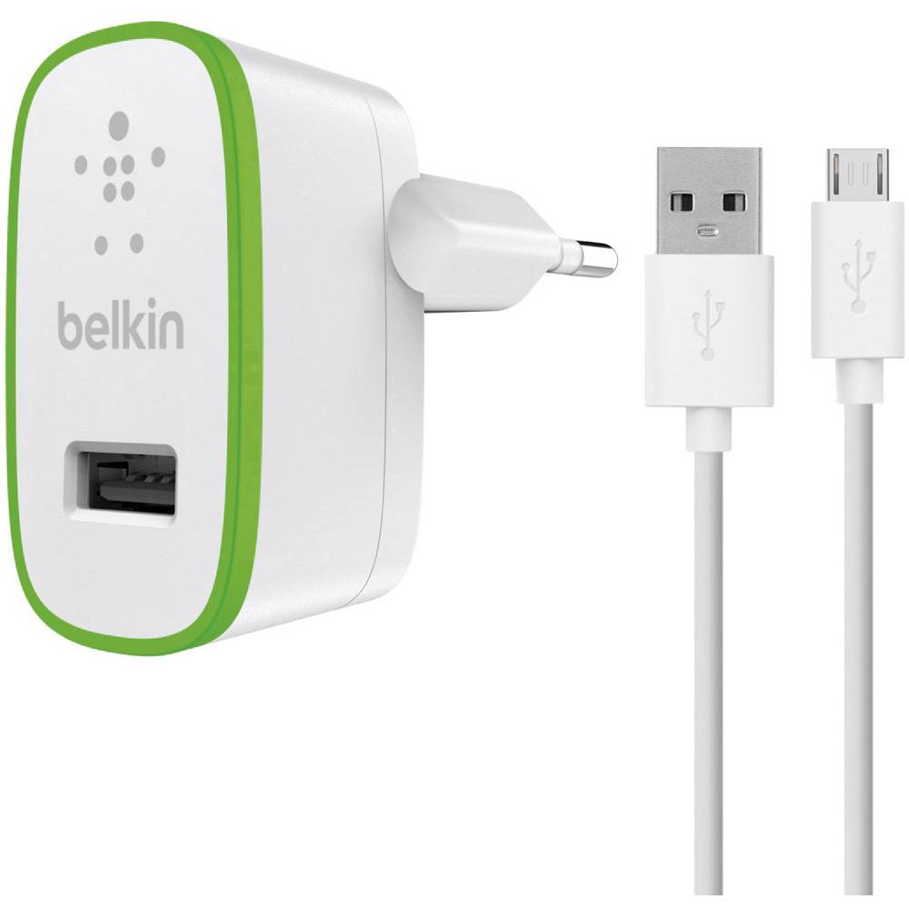 Belkin Universal USB Home Charger 2.1A with MicroUSB cable - захранване с USB изход 2.1А и MicroUSB кабел (бял)