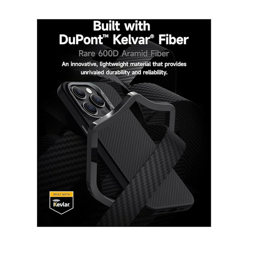 • Хибриден удароустойчив кейс, изработен от силиконова (TPU) странична част и 100% арамидни 600D влакна (кевлар), използвани и в самолетостроенето