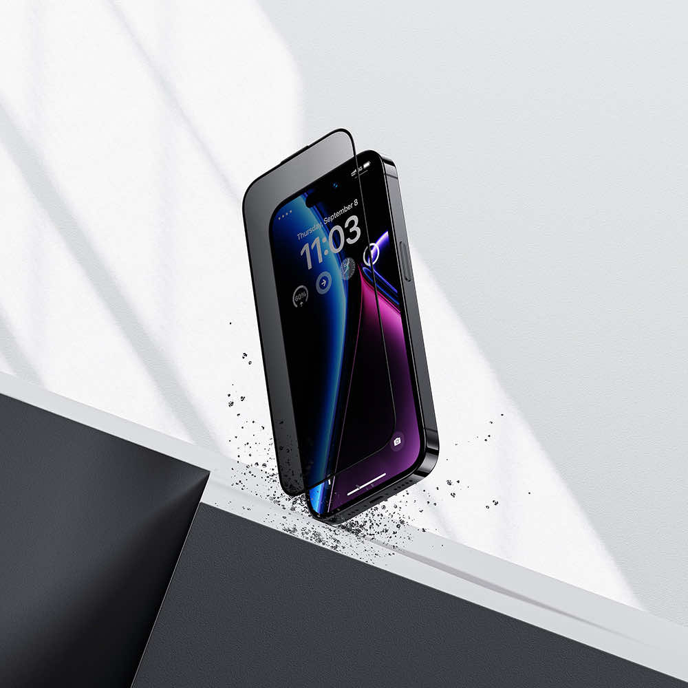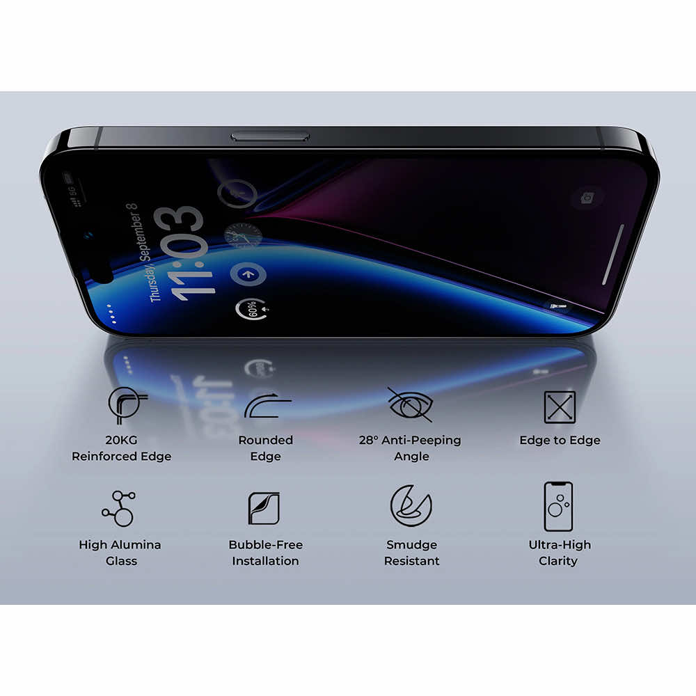 Benks Ultra Shield Privacy Tempered Glass - стъклено защитно покритие с определен ъгъл на виждане за дисплея на iPhone 15, iPhone 14 Pro (черен-прозрачен)