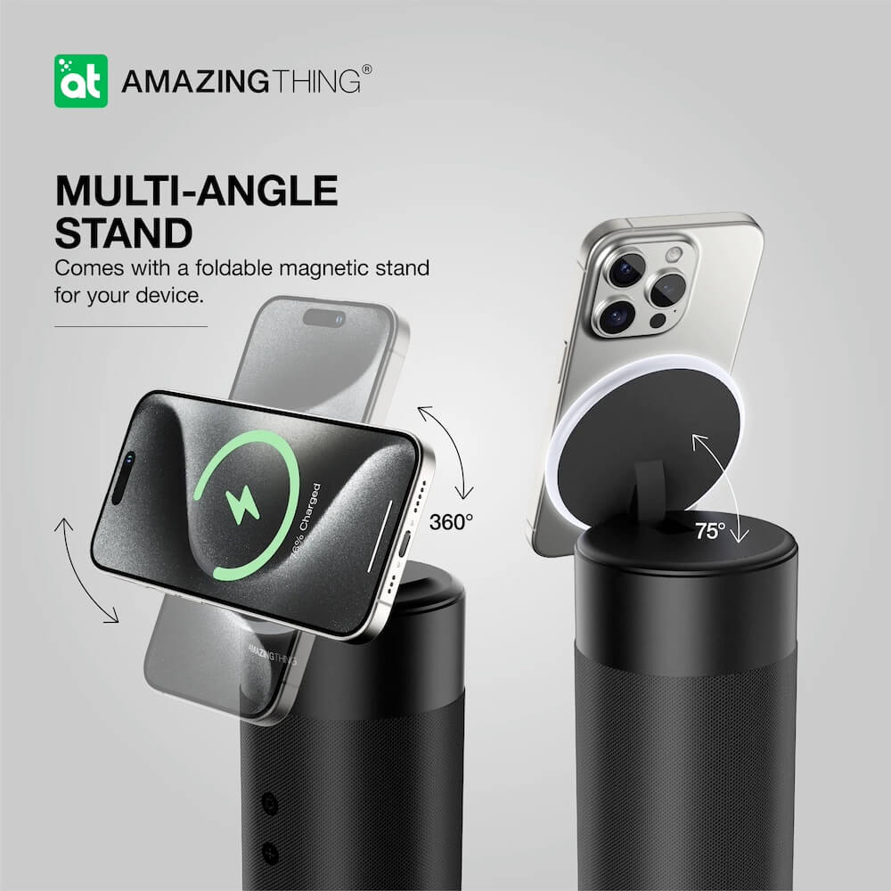 С компактния и лек дизайн, можете лесно да вземете AmazingThing Explorer Pro навсякъде с вас. Неговата вградена стойка за безжично зареждане е съвместима с iPhone и AirPods, което го прави идеален за дома, офиса или на път.