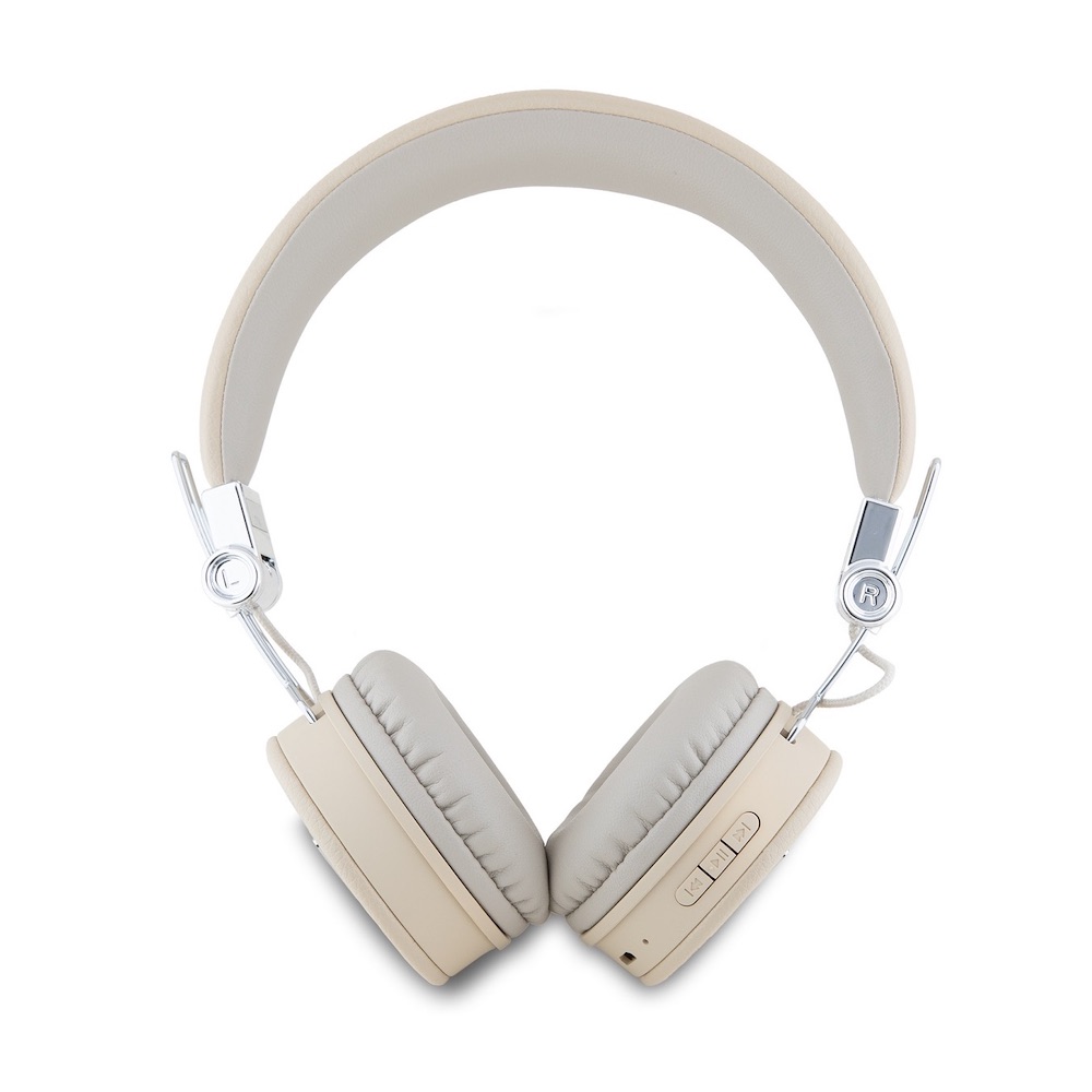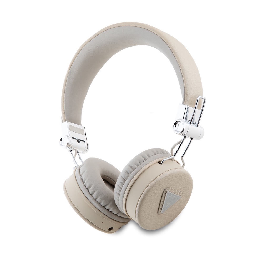 Безжични блутут слушалки с микрофон за мобилни устройства - Guess PU Grained Triangle Logo ENC Bluetooth Headphones (бежов)