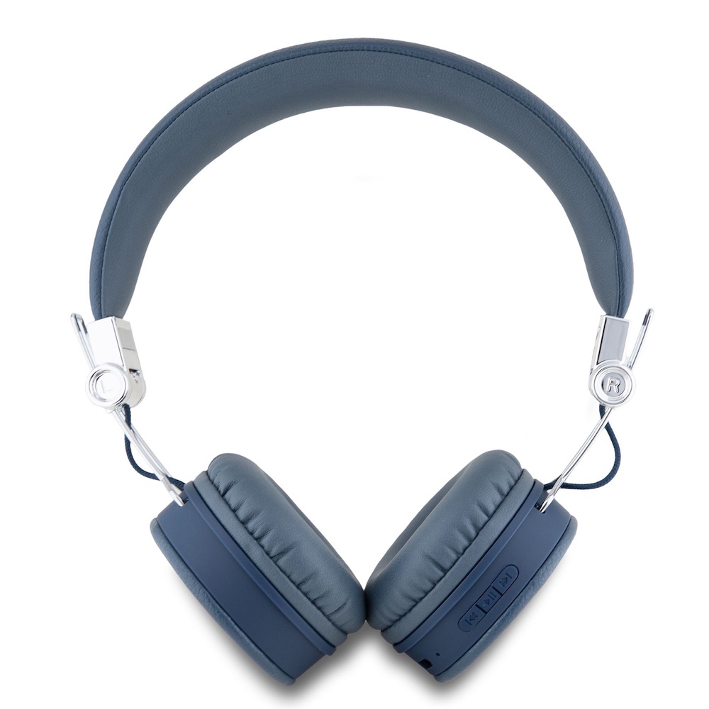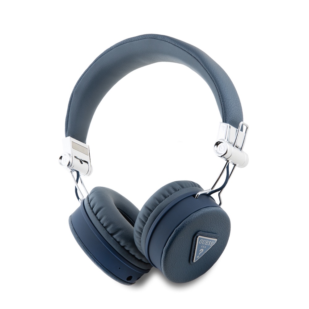 Безжични блутут слушалки с микрофон за мобилни устройства - Guess PU Grained Triangle Logo ENC Bluetooth Headphones (син)