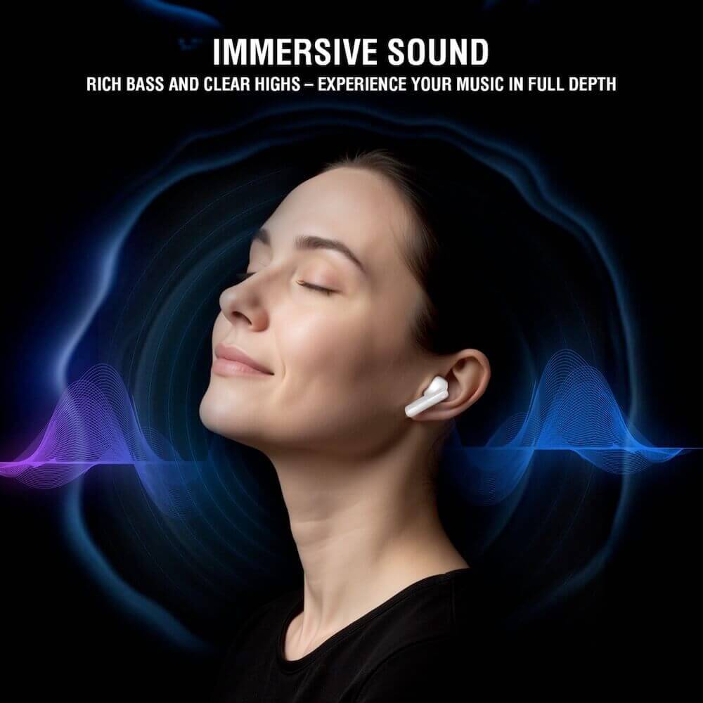 С активното шумоизолиране (ANC) вие значително ще елиминирате фоновия шум, което позволява гласа ви да се чува ясно по време на разговори. Насладете се на стабилна връзка с Bluetooth 5.4, която осигурява безпроблемно превключване между няколко свързани устройства.