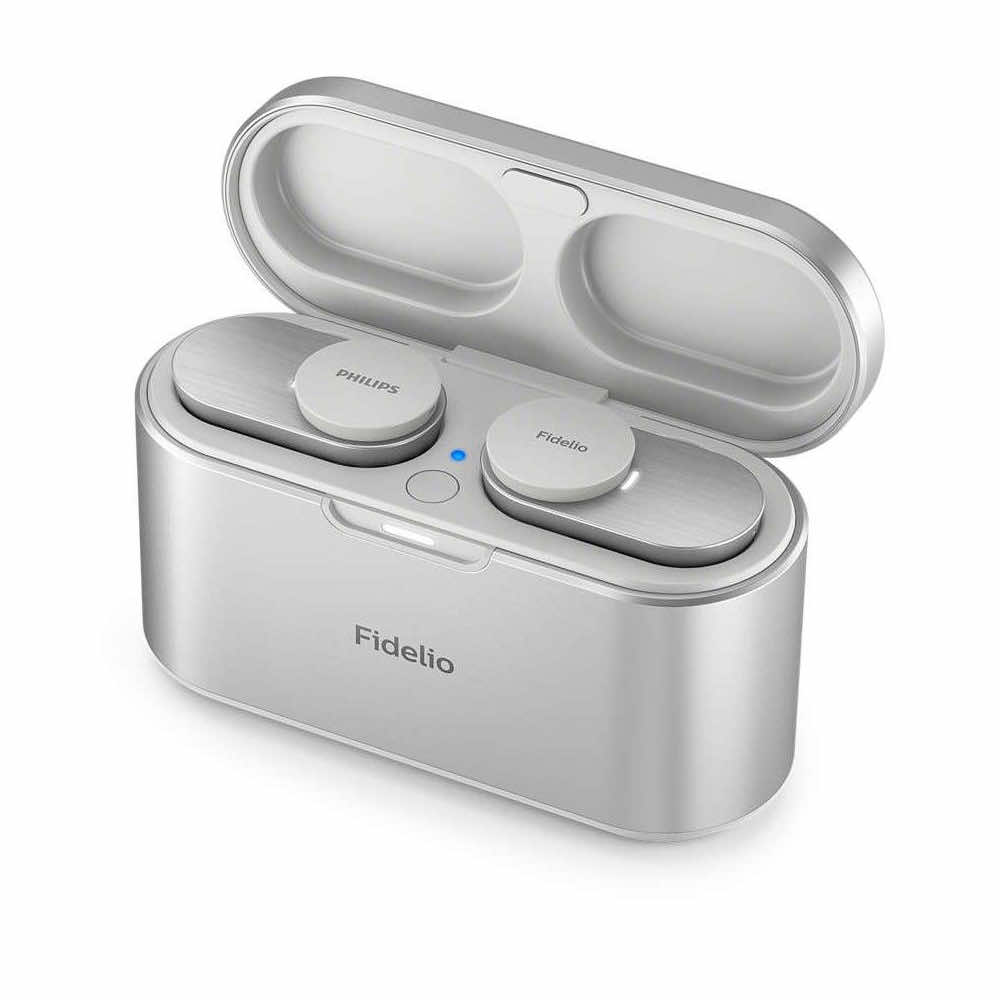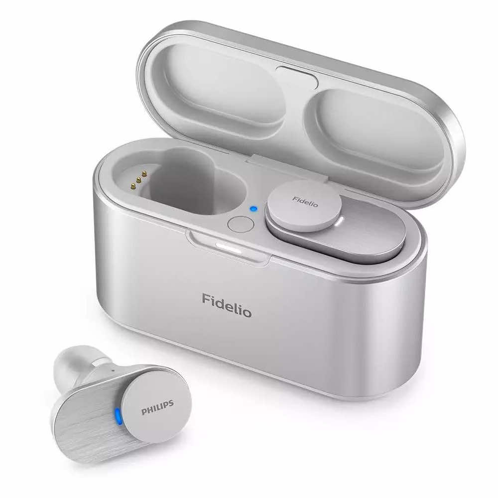 Безжични блутут слушалки със зареждащ кейс и активно шумоизолиране - Philips Fidelio T1 TWS ANC In-Ear Bluetooth Earphones (сребрист)
