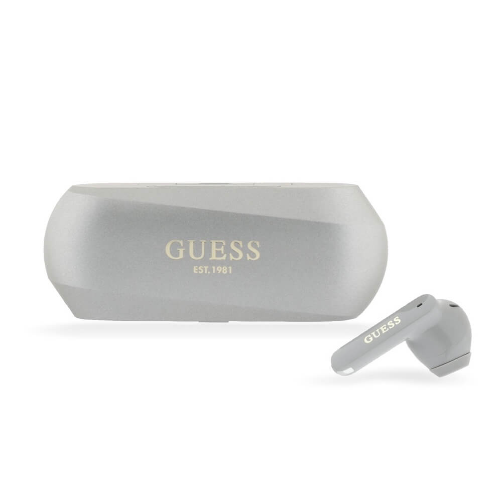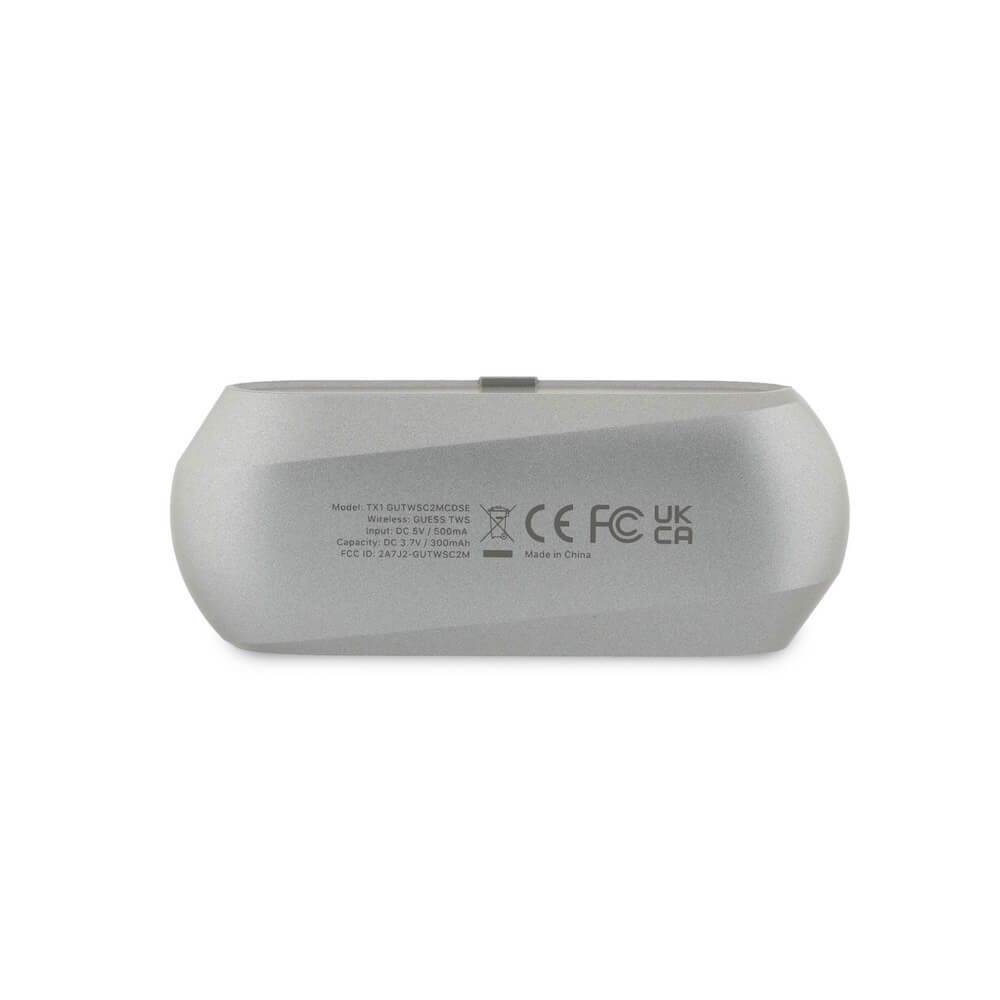 Безжични блутут слушалки със зареждащ кейс за мобилни устройства - Guess Elongated Metallic ENC Stereo TWS Headset (сребрист)