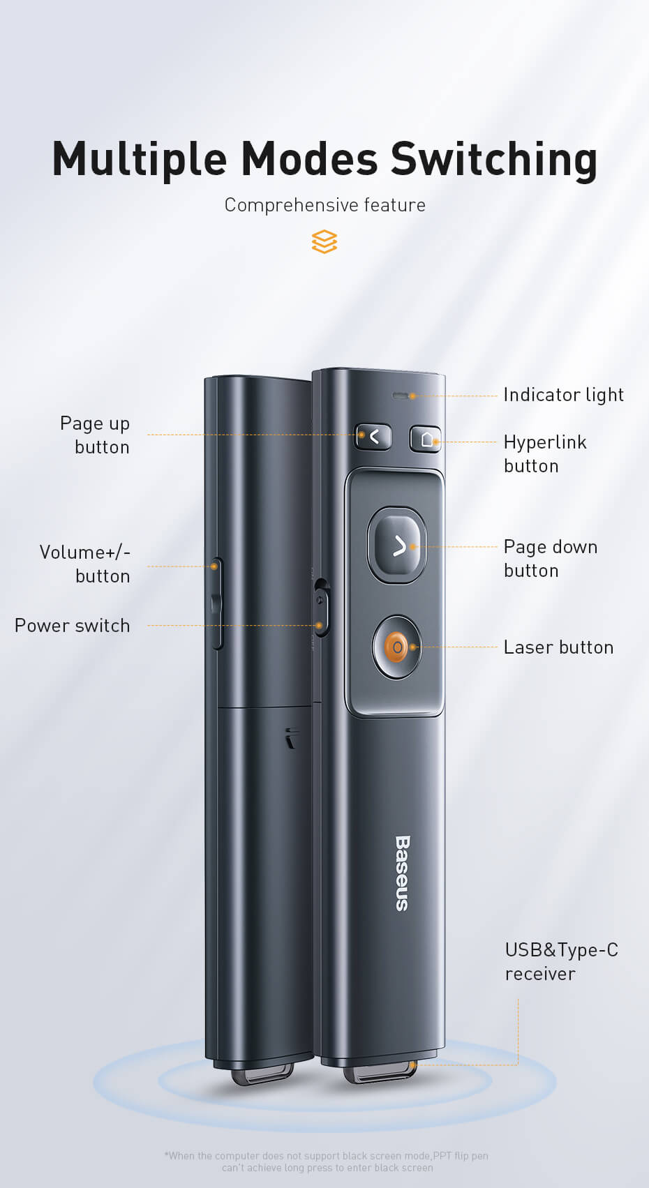 Безжично блутуут устройство за управление на вашите презентации - Baseus Orange Dot Wireless Presenter (ACFYB-C0G) (тъмносив)