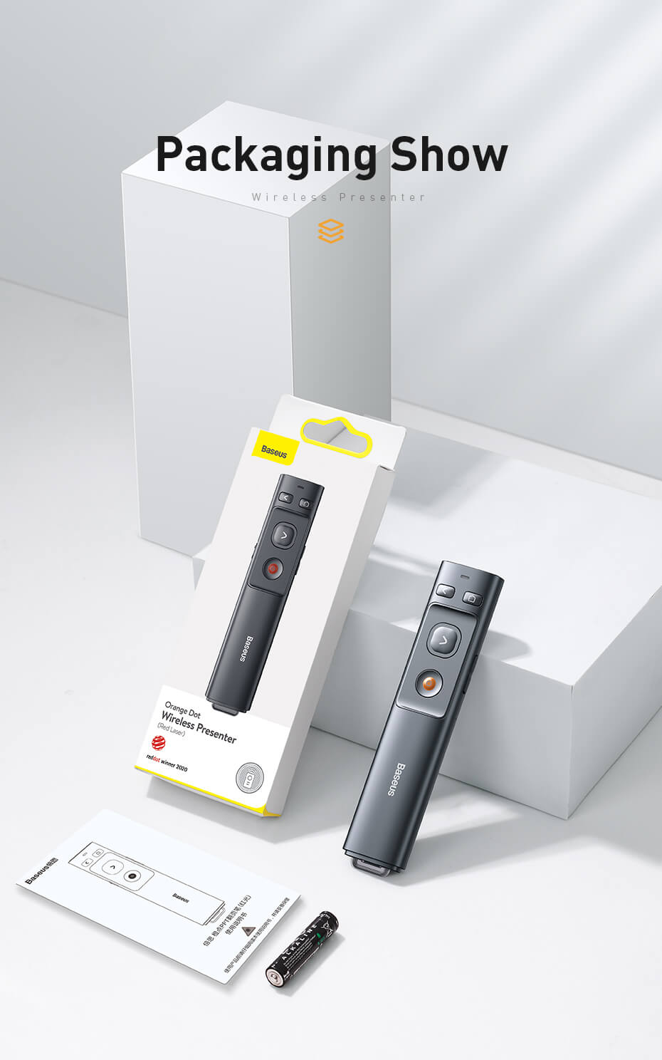 - В комплекта: - 1 х Baseus Orange Dot Wireless Presenter - 1 x ръководство за употреба
