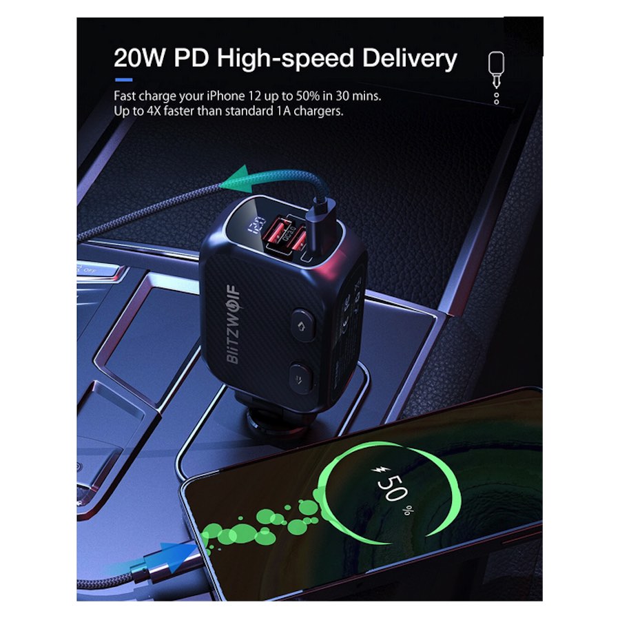 - Зарядно за кола с два USB-A и един USB-C изхода и допълнителни два извода за запалка на автомобил