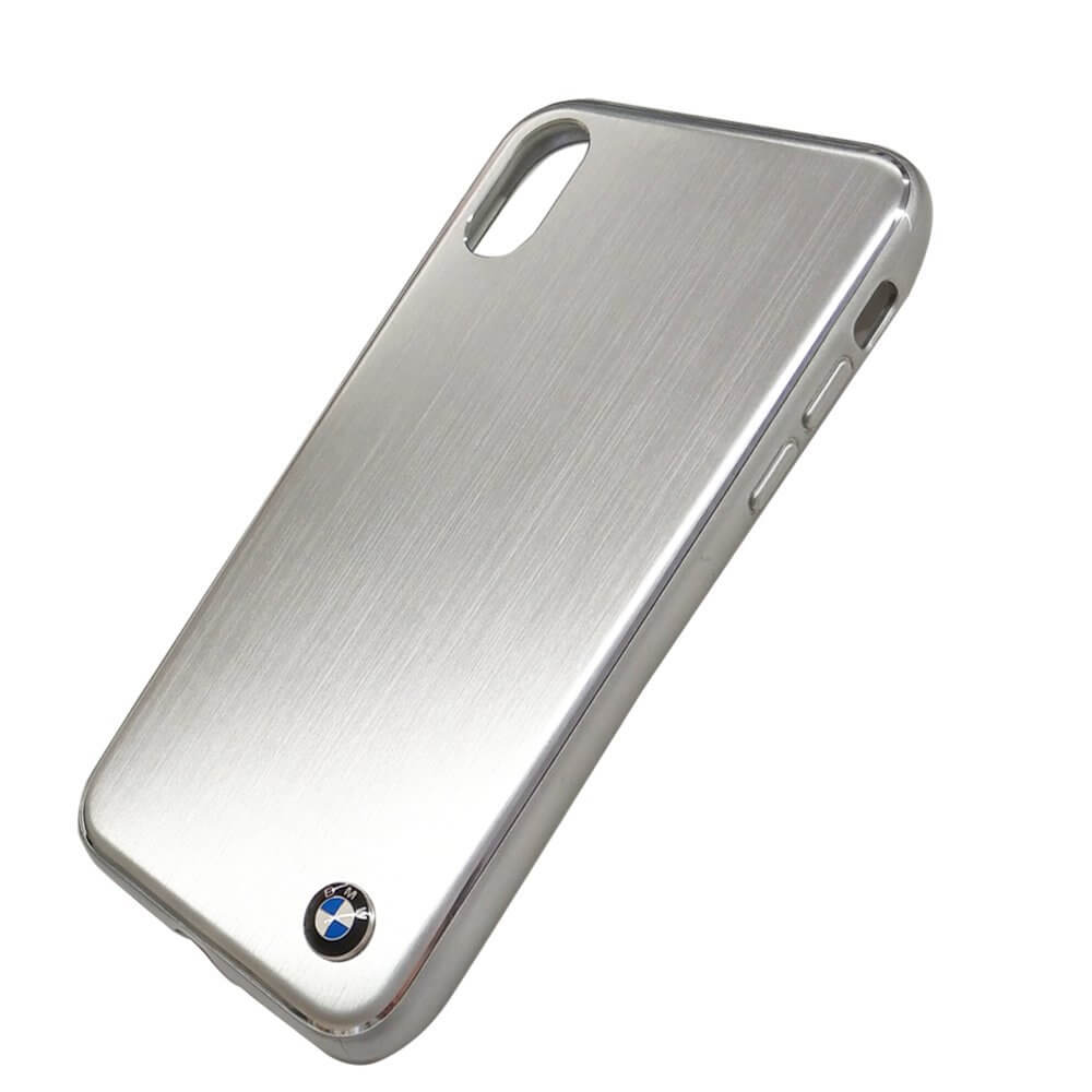 BMW Brushed Aluminium Soft Case - дизайнерски алуминиев кейс с TPU рамка за iPhone XS, iPhone X (сребрист)