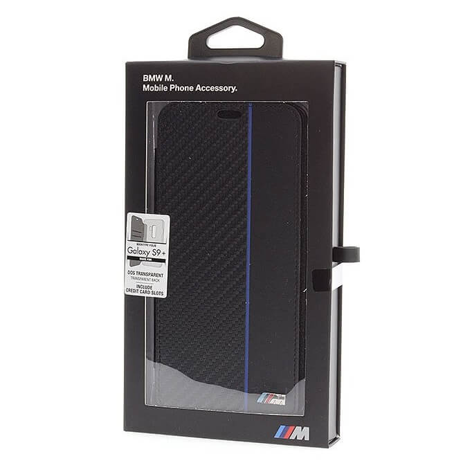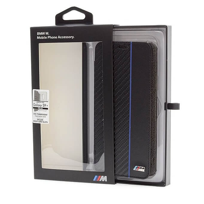 BMW M Collection Booktype Case - дизайнерски кожен калъф, тип портфейл за Samsung Galaxy S9 Plus (черен-син)