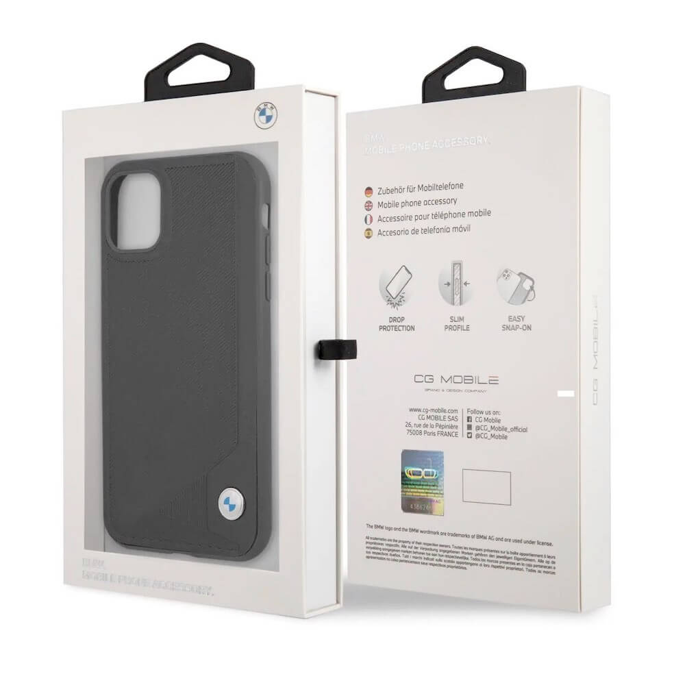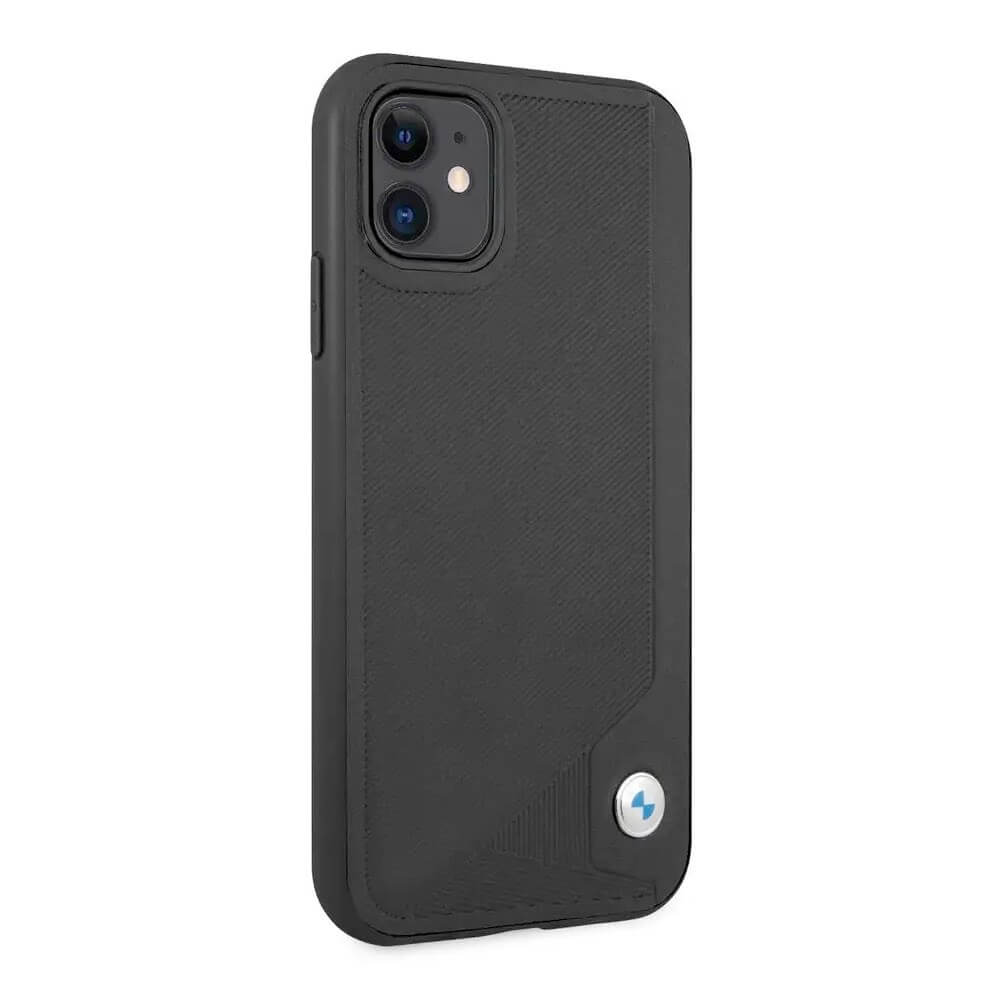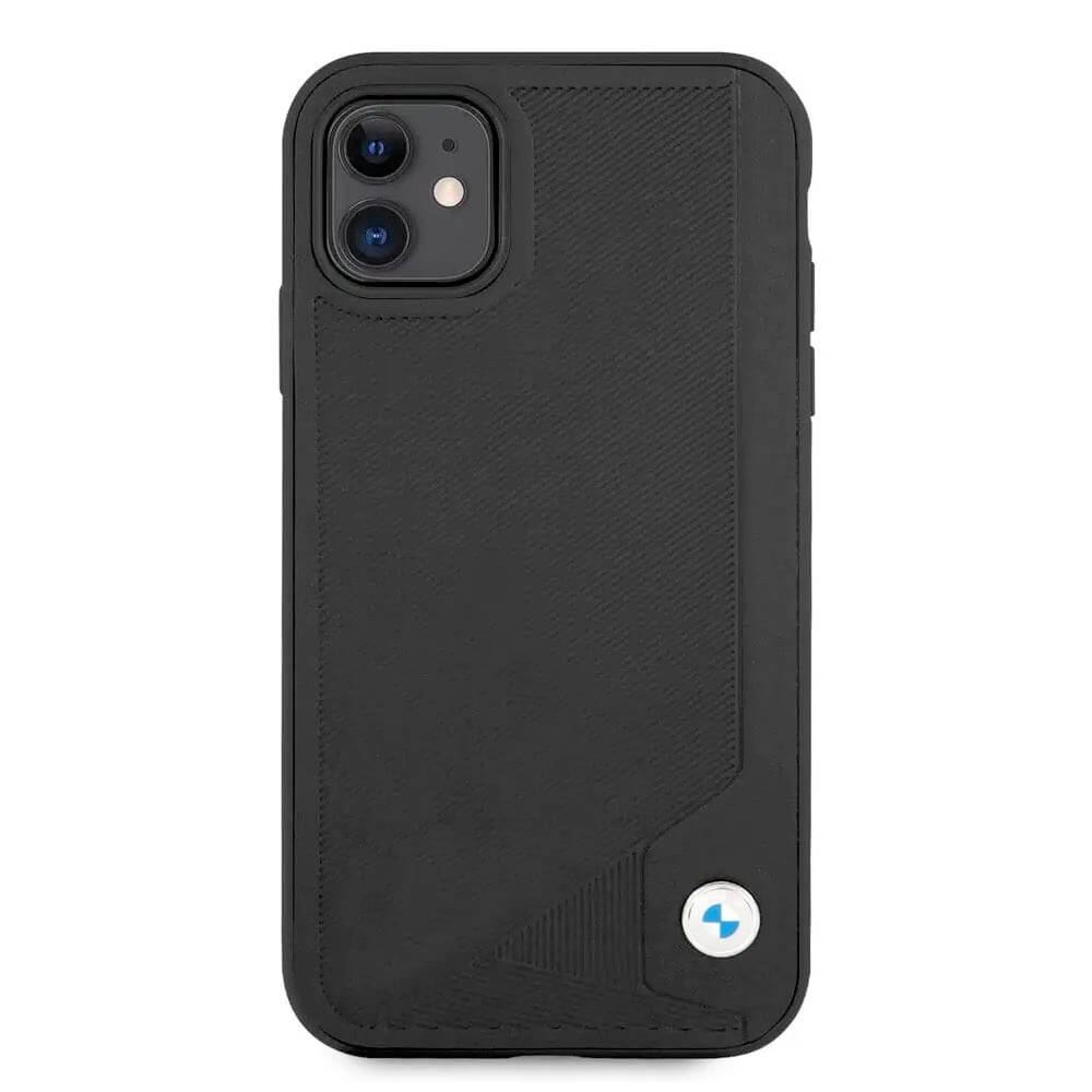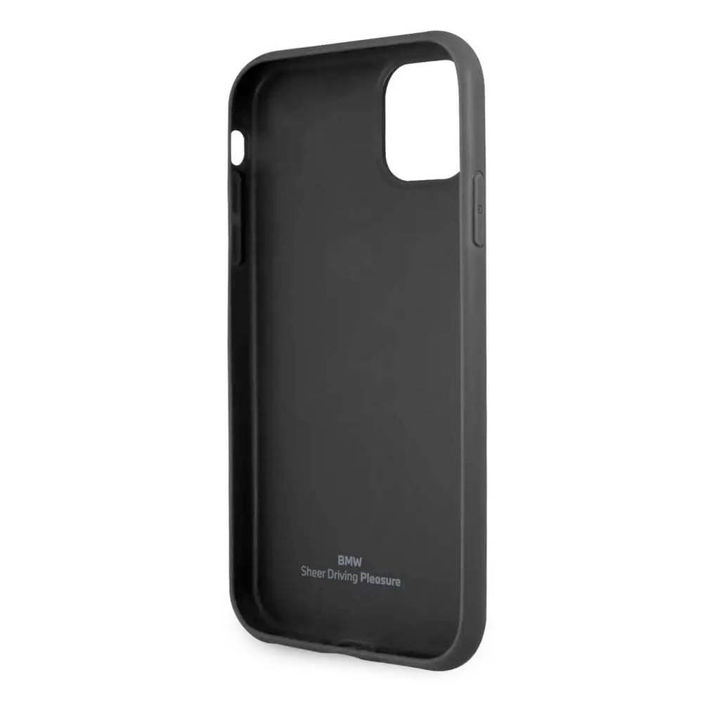 BMW Signature Leather Debossed Stripes Leather Case - кожен кейс (естествена кожа) за iPhone 11 (черен)