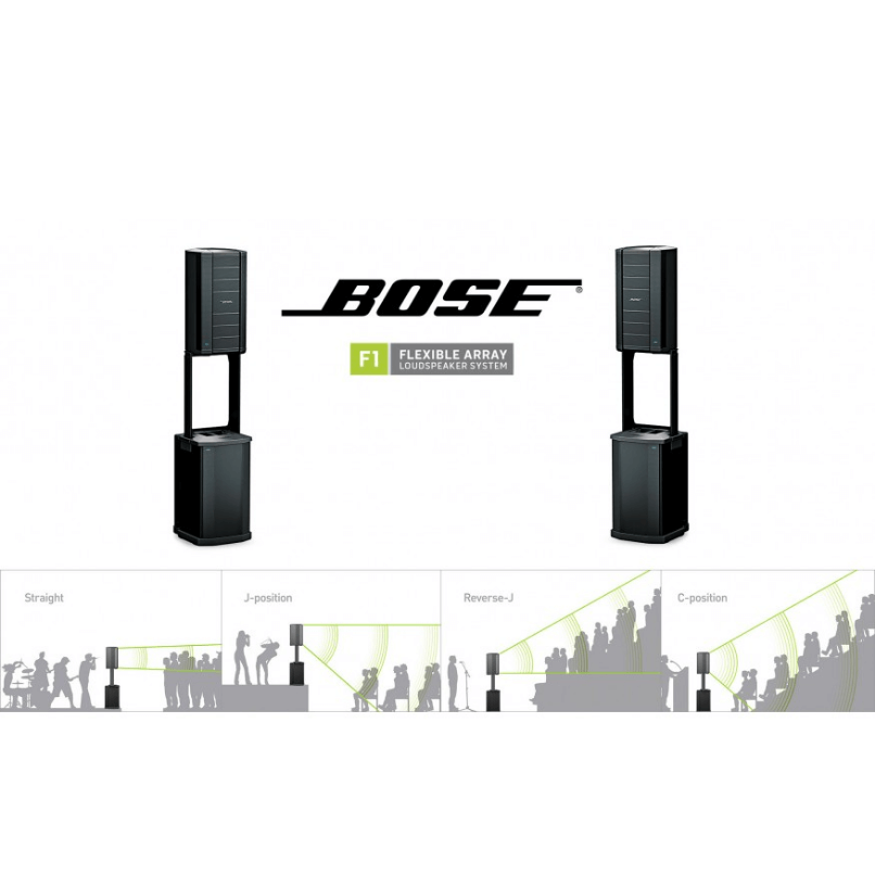 - Bose F1 Model 812 е широкообхватен високоговорител с мощност от 1000 вата, включващ Bose Flexible Array технология. В основата на F1 е 12-инчов нискочестотен говорител, заложен зад масив от осем драйвера с висока мощност