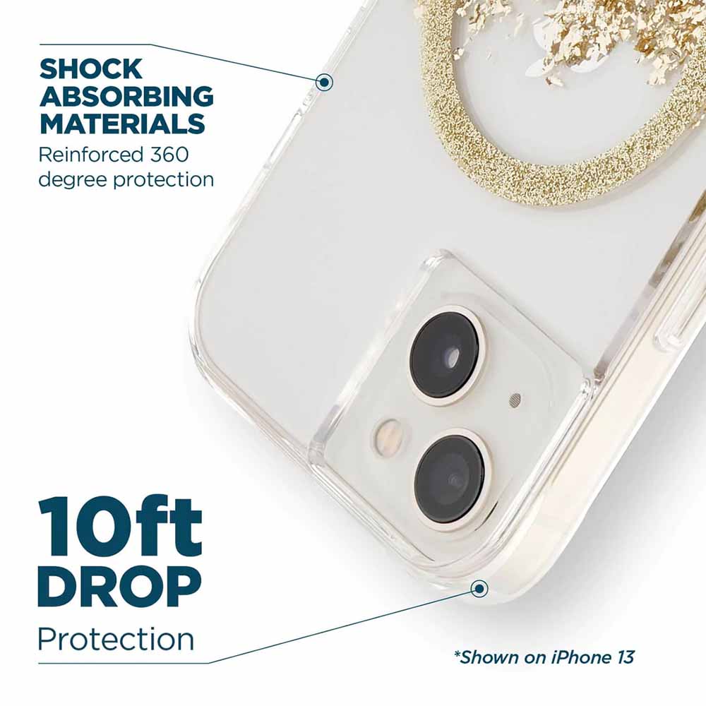 Case Mate Karat Marble MagSafe Case - удароустойчив хибриден кейс с Magsafe за iPhone 14 (прозрачен-златен)