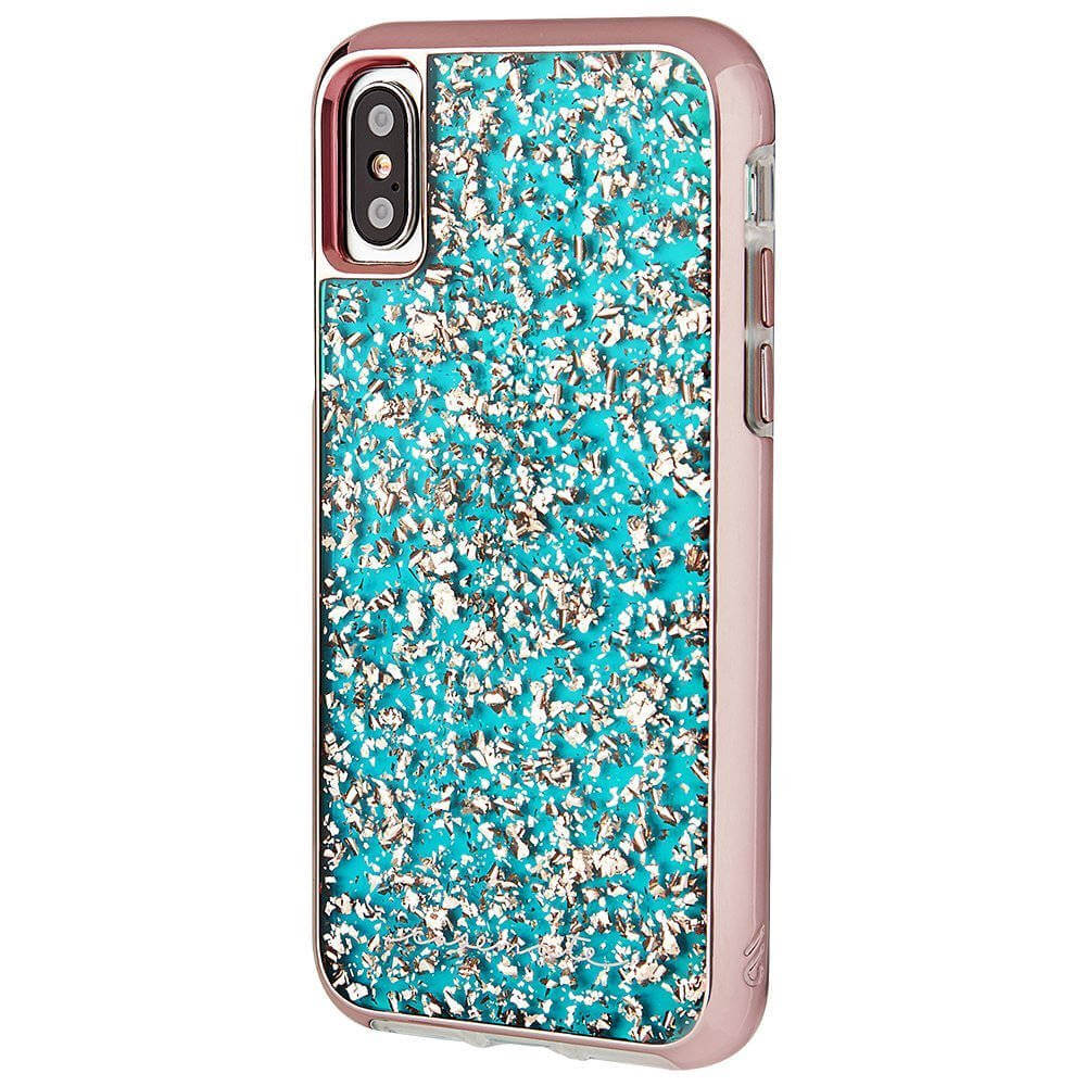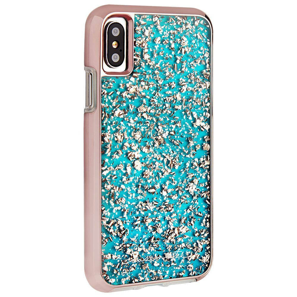 CaseMate Karat Case - дизайнерски кейс с елементи от розово злато и висока защита за iPhone XS, iPhone X (син)