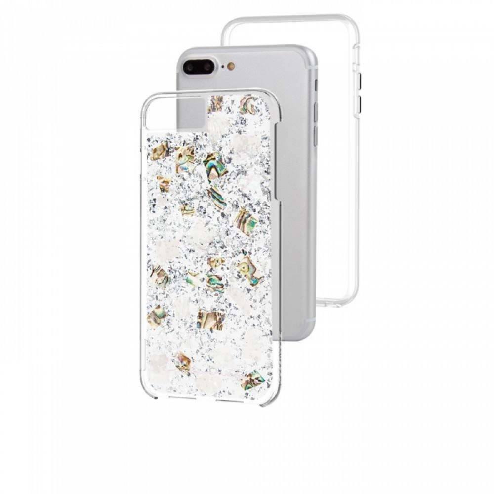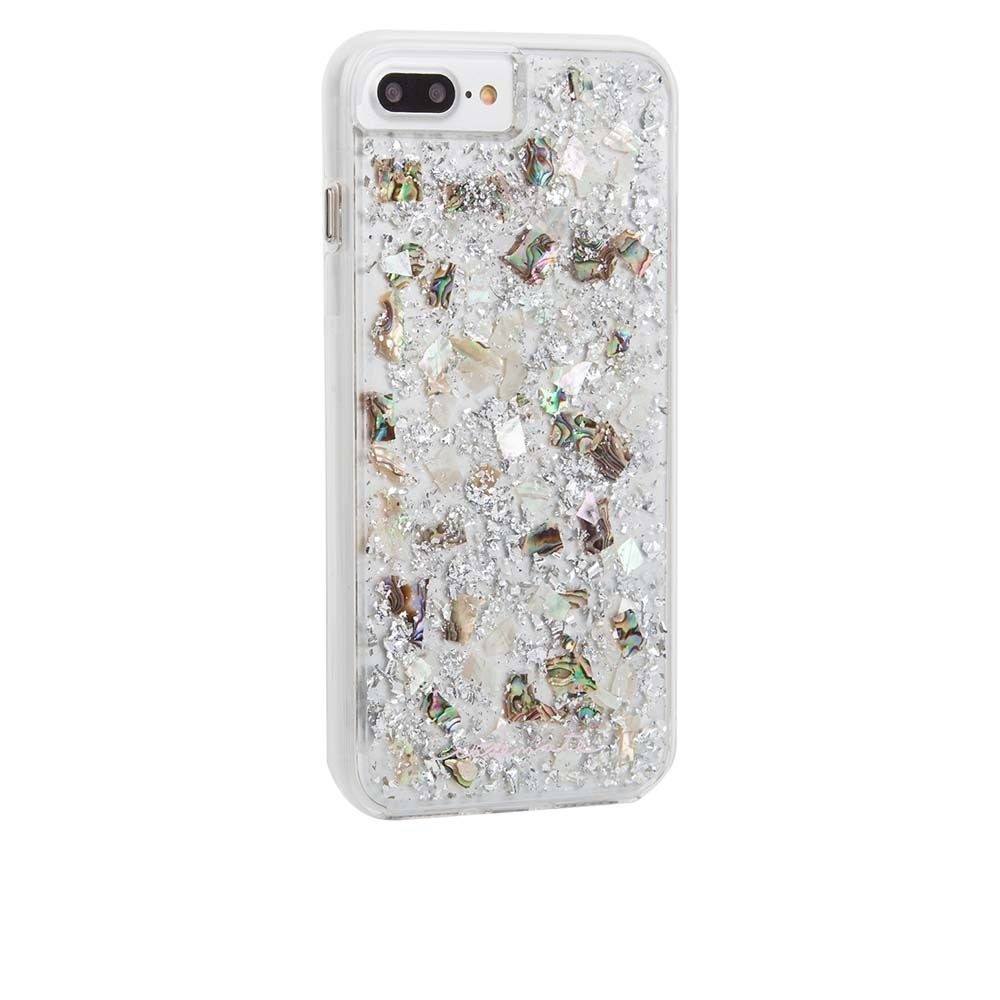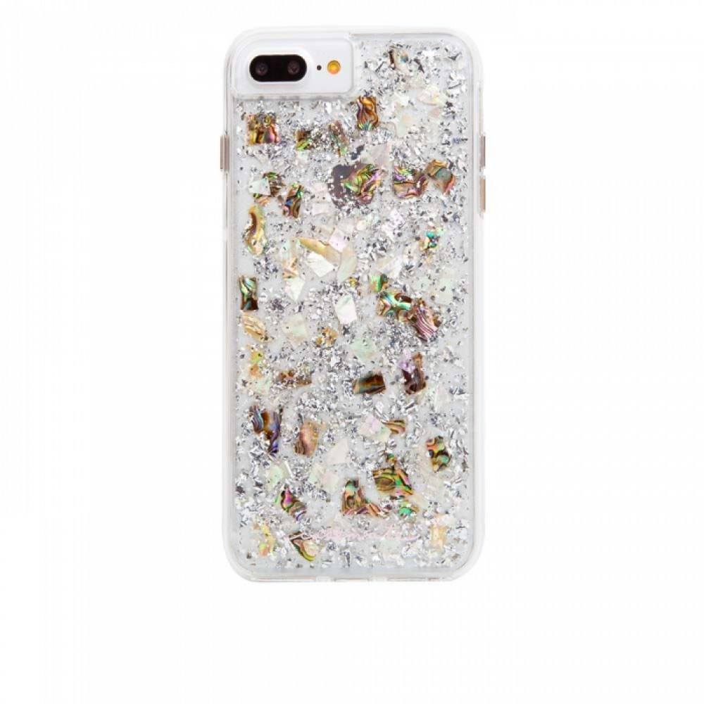 CaseMate Karat Case - дизайнерски кейс с истински перлени и сребърни нишки и висока защита за iPhone 8 Plus, iPhone 7 Plus, iPhone 6S Plus, iPhone 6 Plus (перлен)