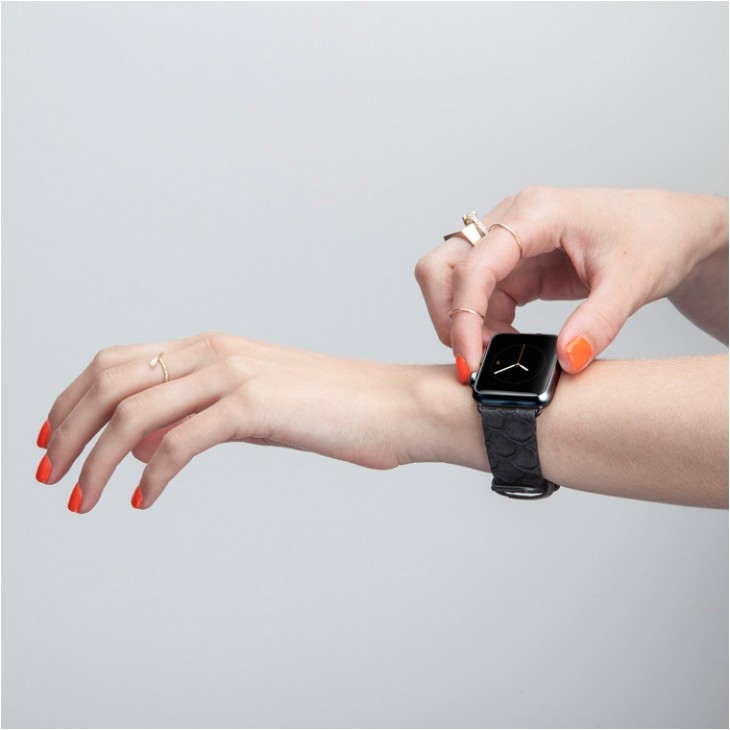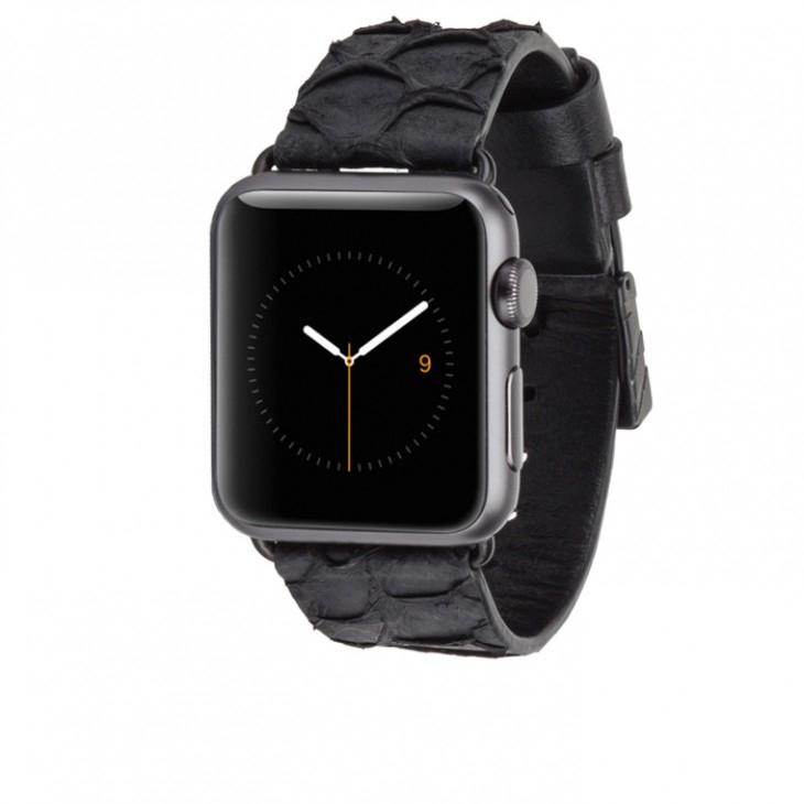 Casemate Scaled Leather Strap - дизайнерска кожена (естествена змийска кожа) каишка за Apple Watch 38мм, 40мм (черен)