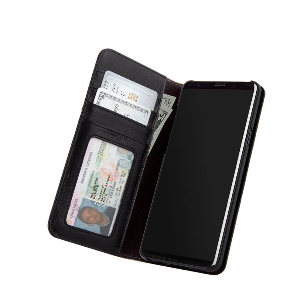 CaseMate Wallet Folio - кожен калъф (естествена кожа), тип портфейл за Samsung Galaxy S9 Plus (черен)
