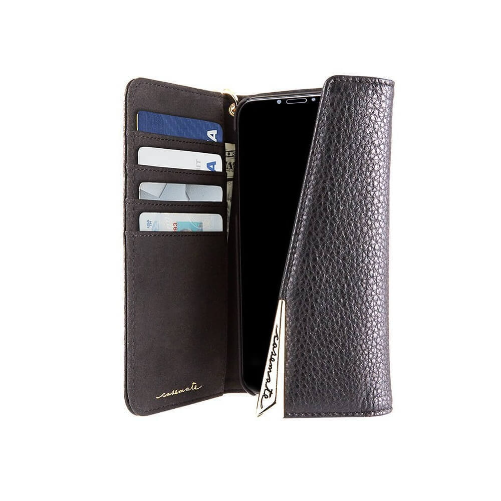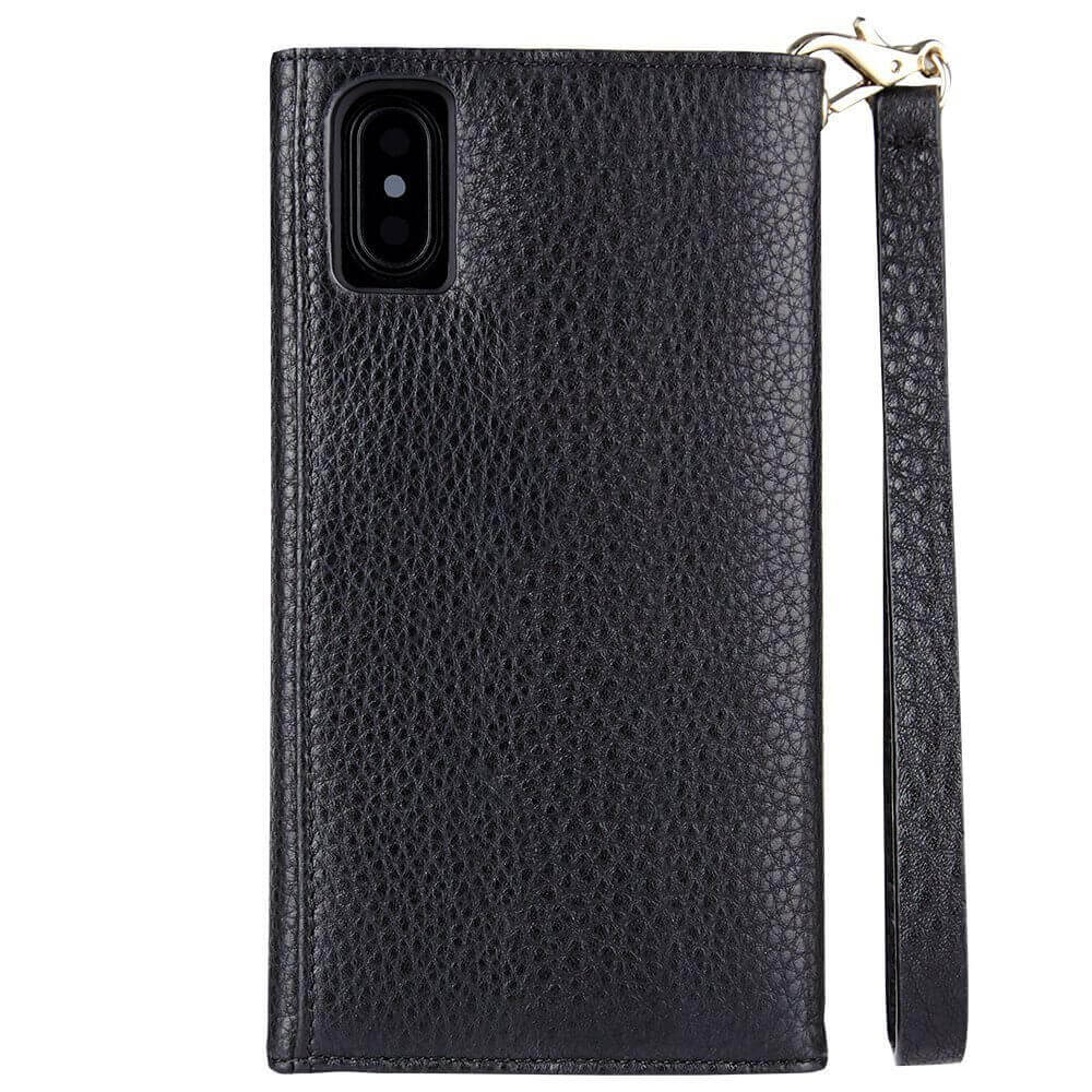 CaseMate Wristlet Folio - кожен калъф (естествена кожа), тип портфейл за iPhone XS, iPhone X (черен)