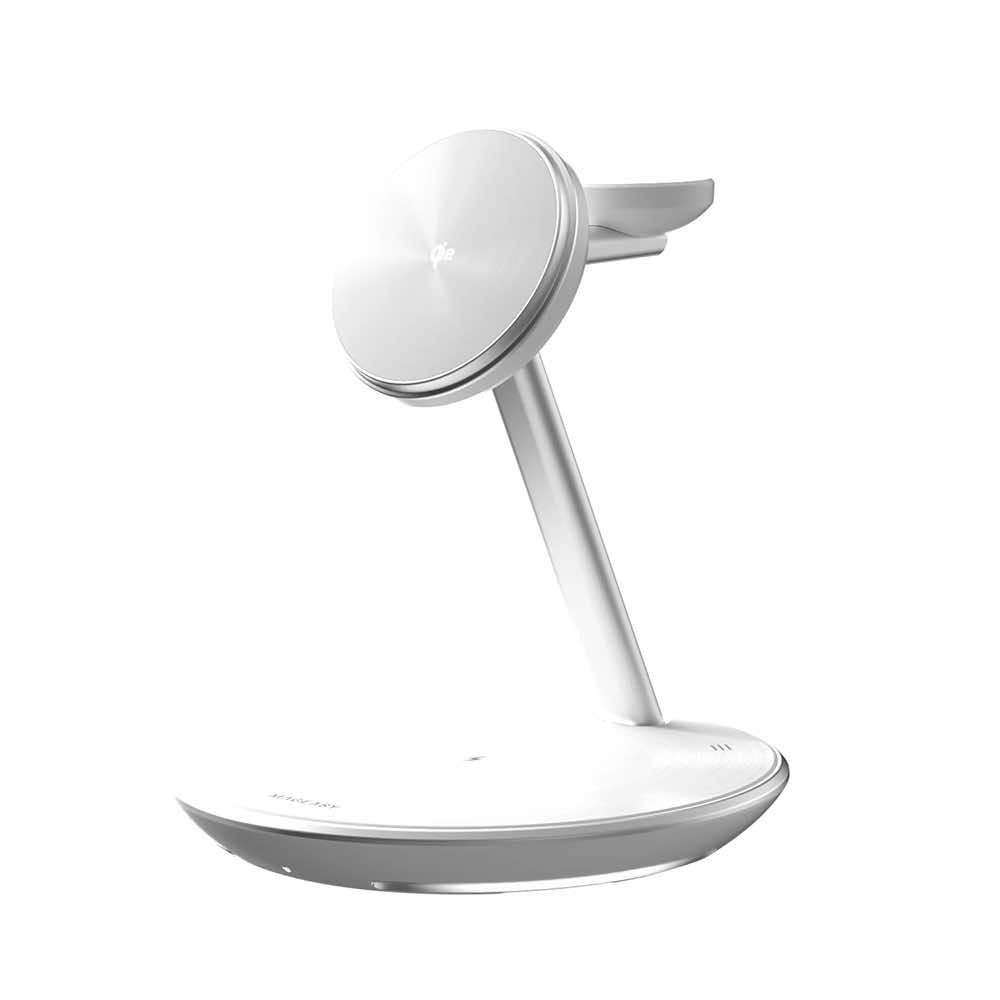 Четворна поставка (пад) за безжично зареждане за iPhone с Magsafe, Apple Watch, AirPods, Qi съвместими устройства - MagEasy PowerStation 5-in-1 Magnetic Wireless Charging Stand Qi2 15W (бял)