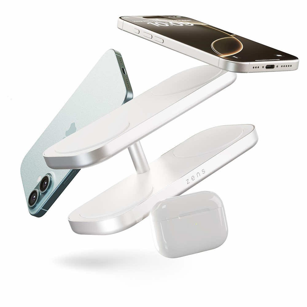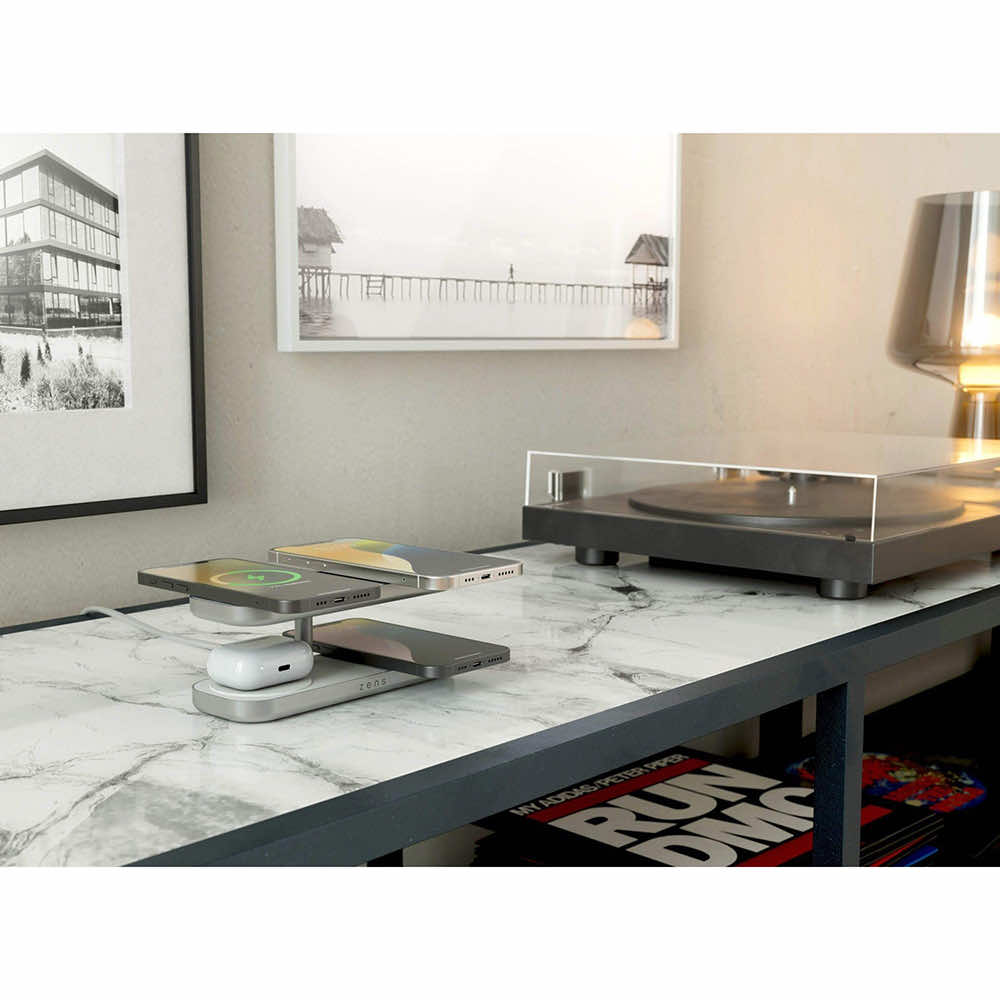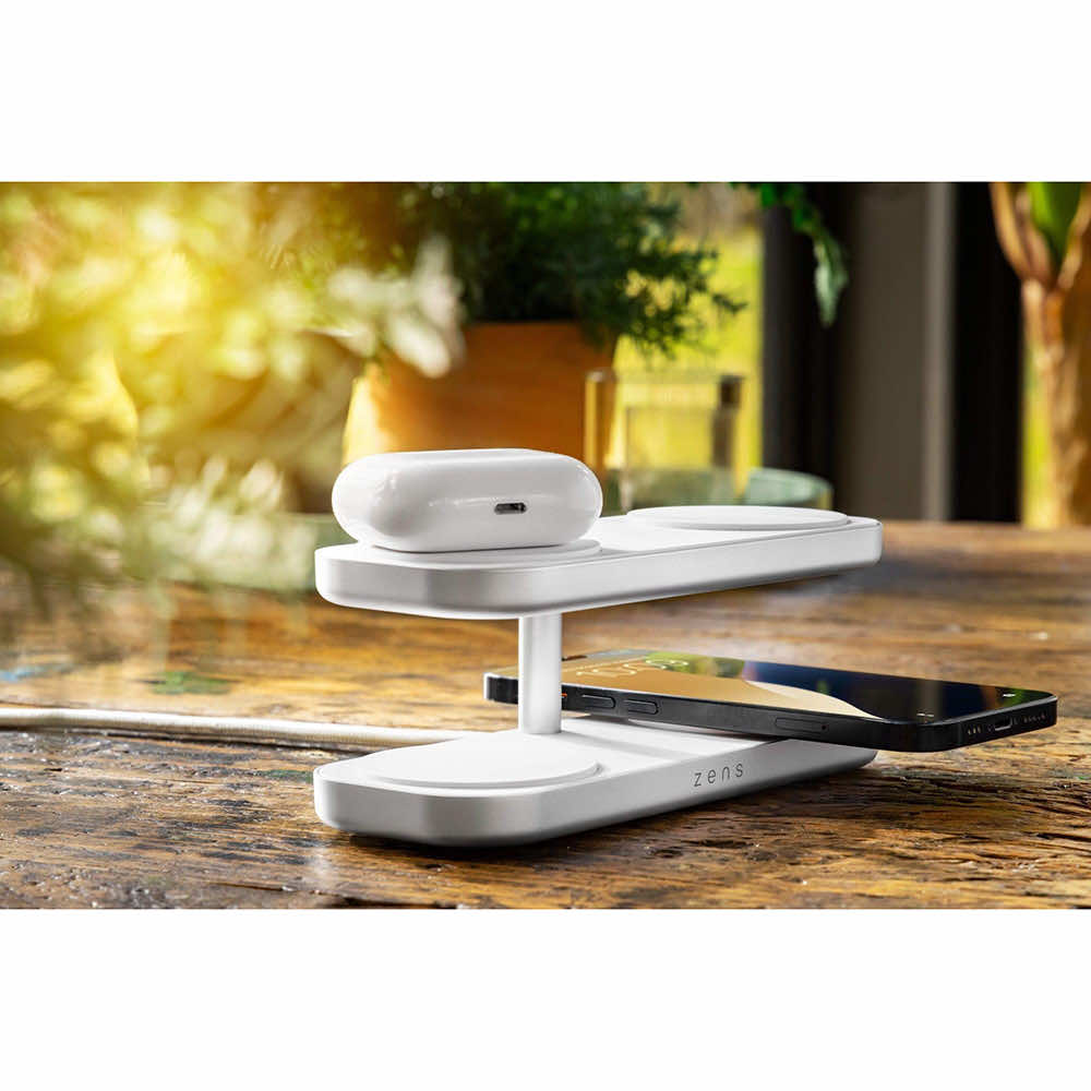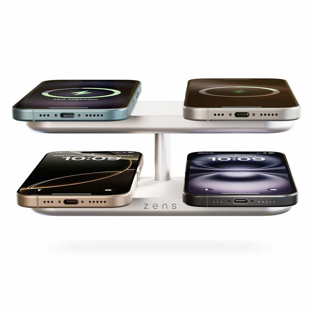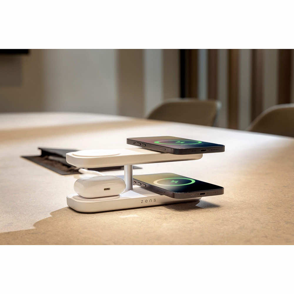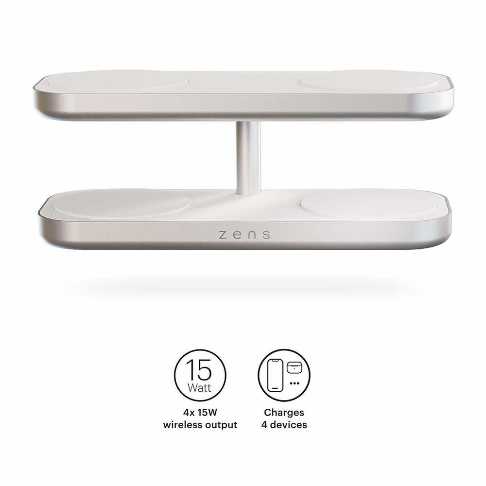Четворна станция за безжично зареждане на MagSafe и Qi-съвместими устройства - Zens Aluminium Quattro Wireless Charger Pro 4 60W ZEQC01W (бял)