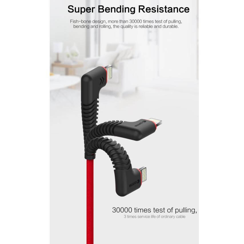 Comma Bingo MFI Angled Cable - изключително здрав и качествен Lightning кабел за iPhone, iPad, iPod (150 см.) (червен)