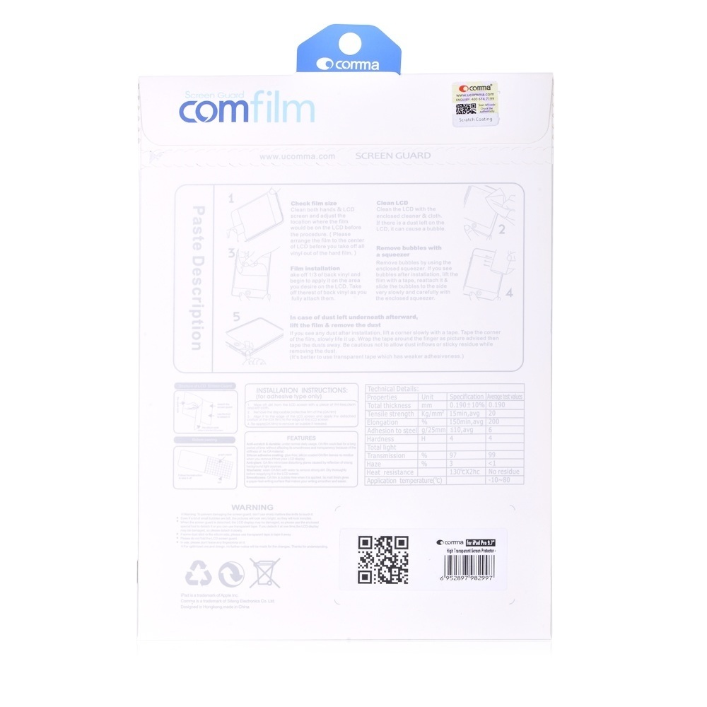 Comma Glossy Screen Protector - прозрачно защитно покритие за дисплея на iPad Pro 9.7, iPad Air 2, iPad Air