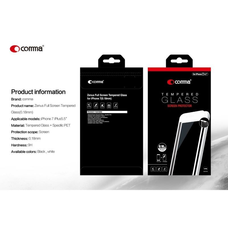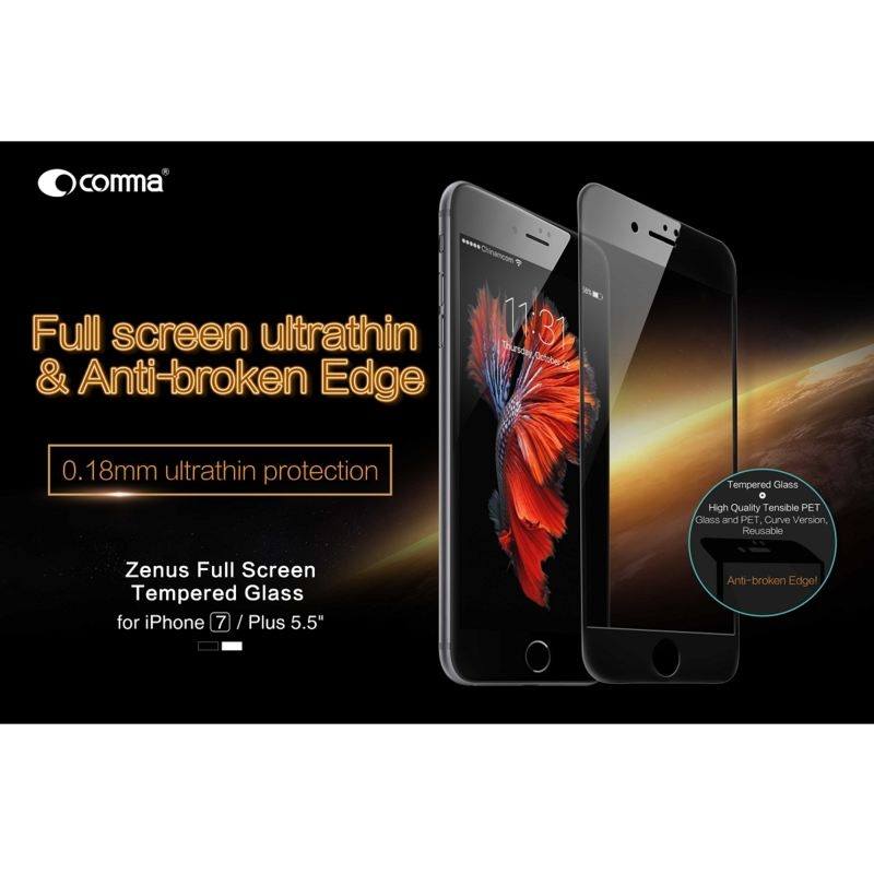 Comma Zenus Full Screen Tempered Glass (0.18 mm) - обхващащо и ръбовете стъклено защитно покритие за дисплея и покритие за задната част за iPhone 8 Plus, iPhone 7 Plus (черен)
