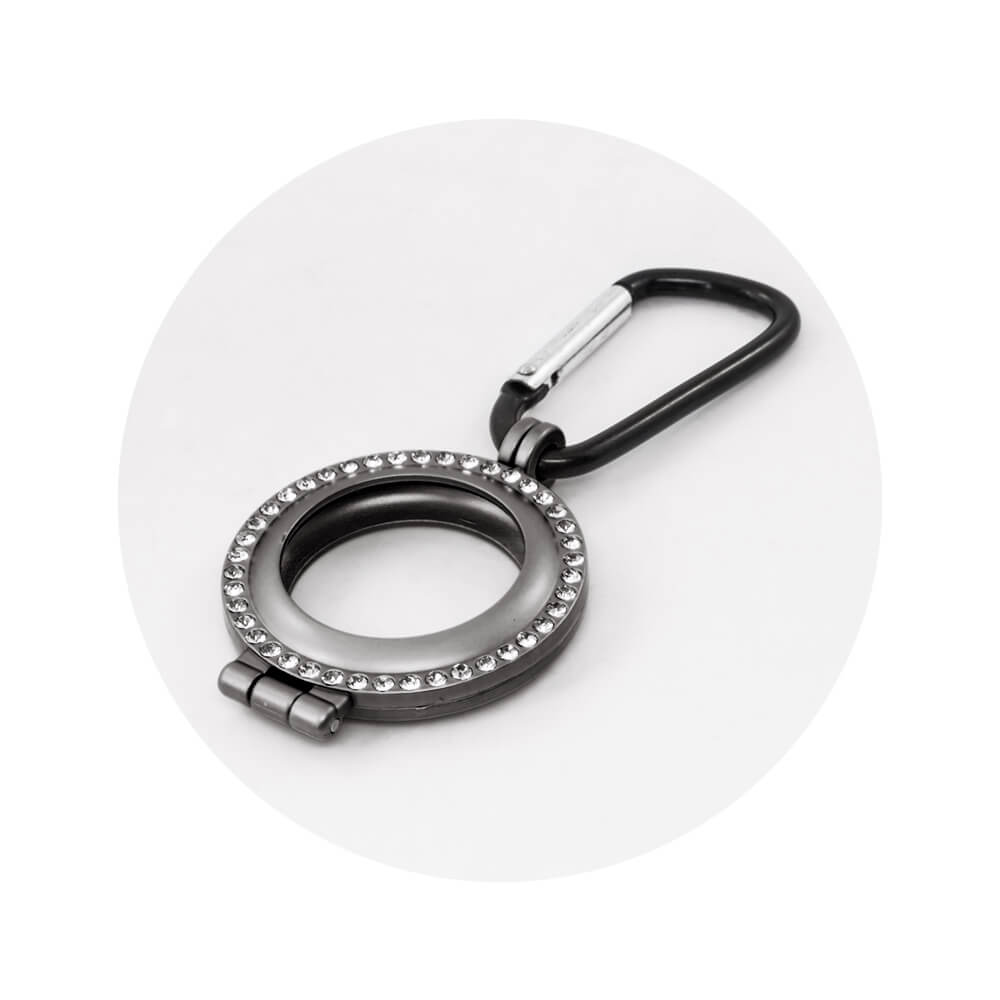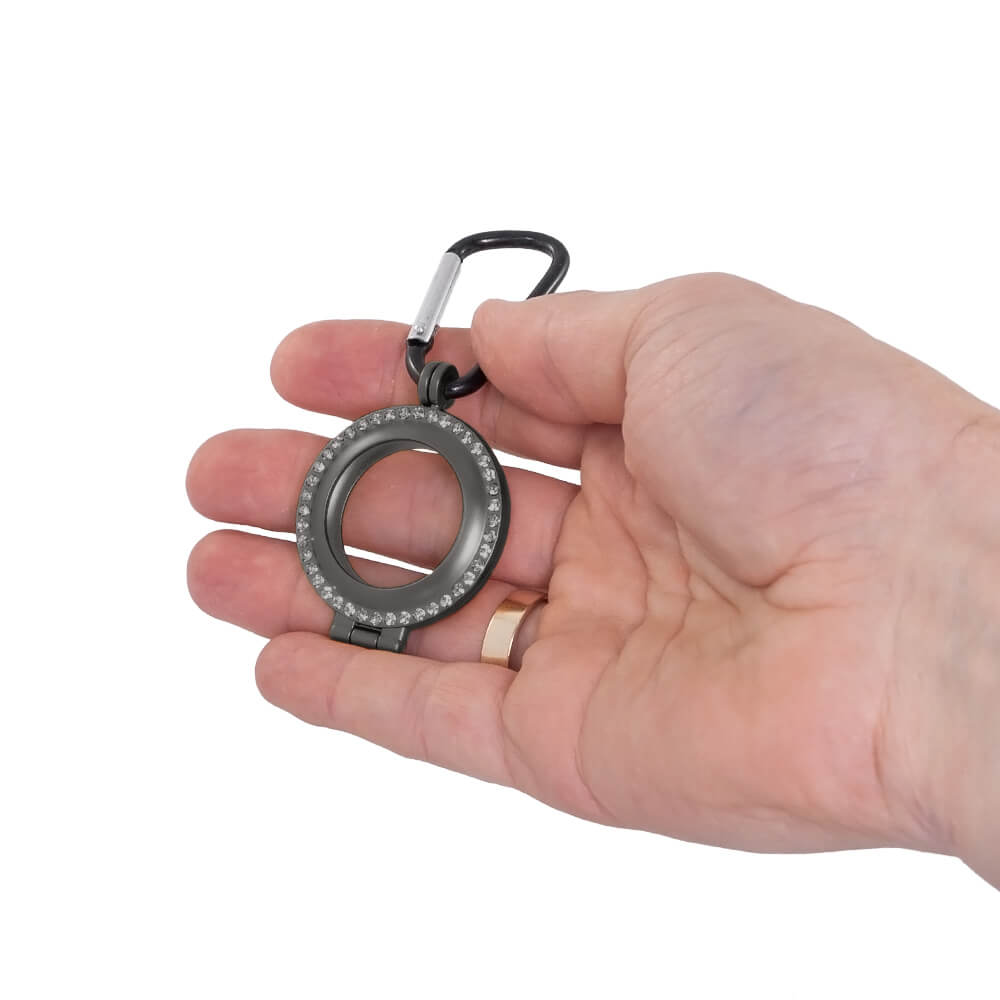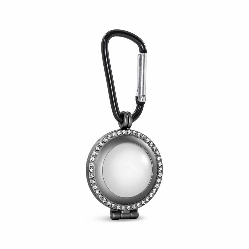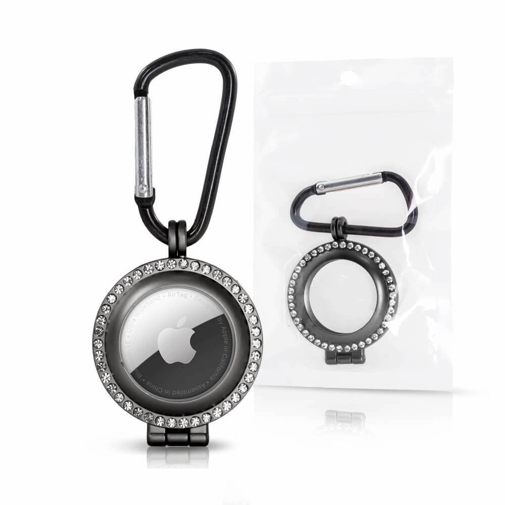 - Метален кейс с кристали и карабинер, предназначен за Apple AirTag