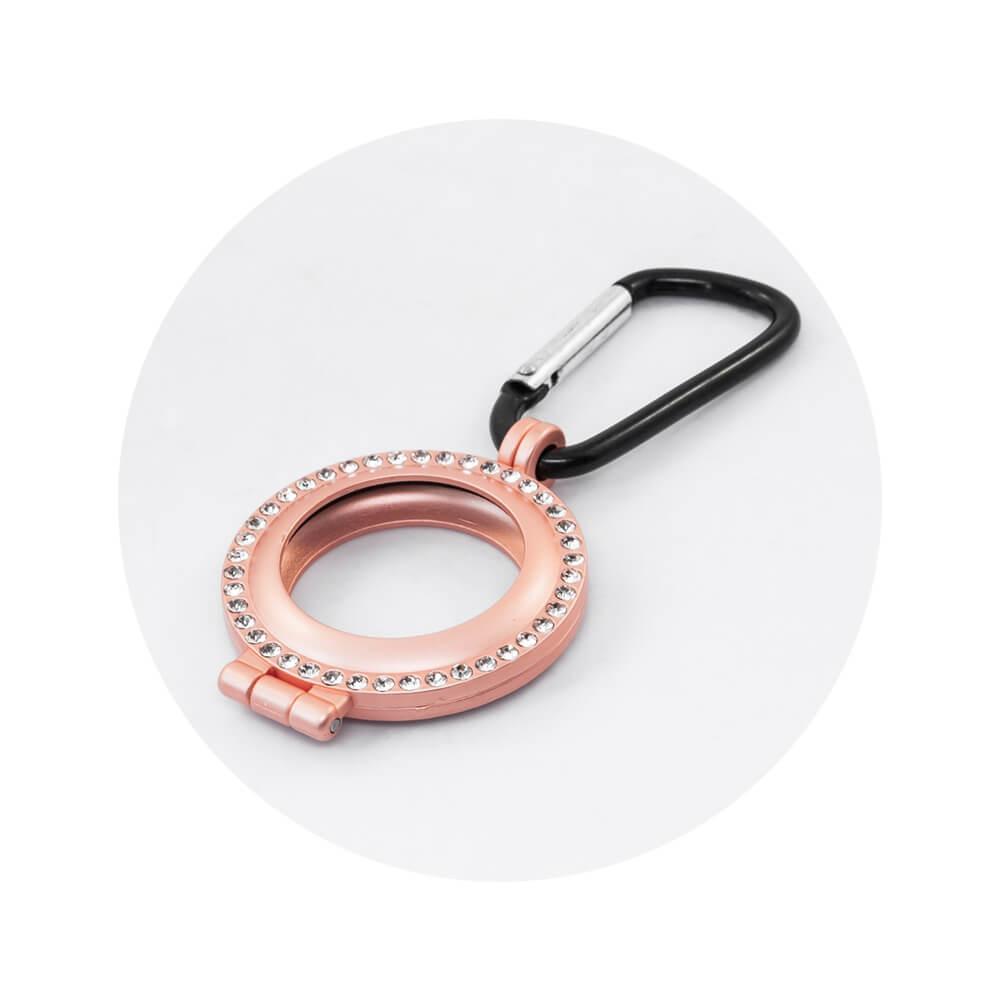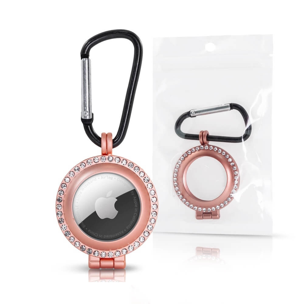 • Метален кейс с кристали и карабинер, предназначен за Apple AirTag