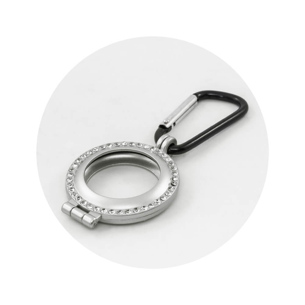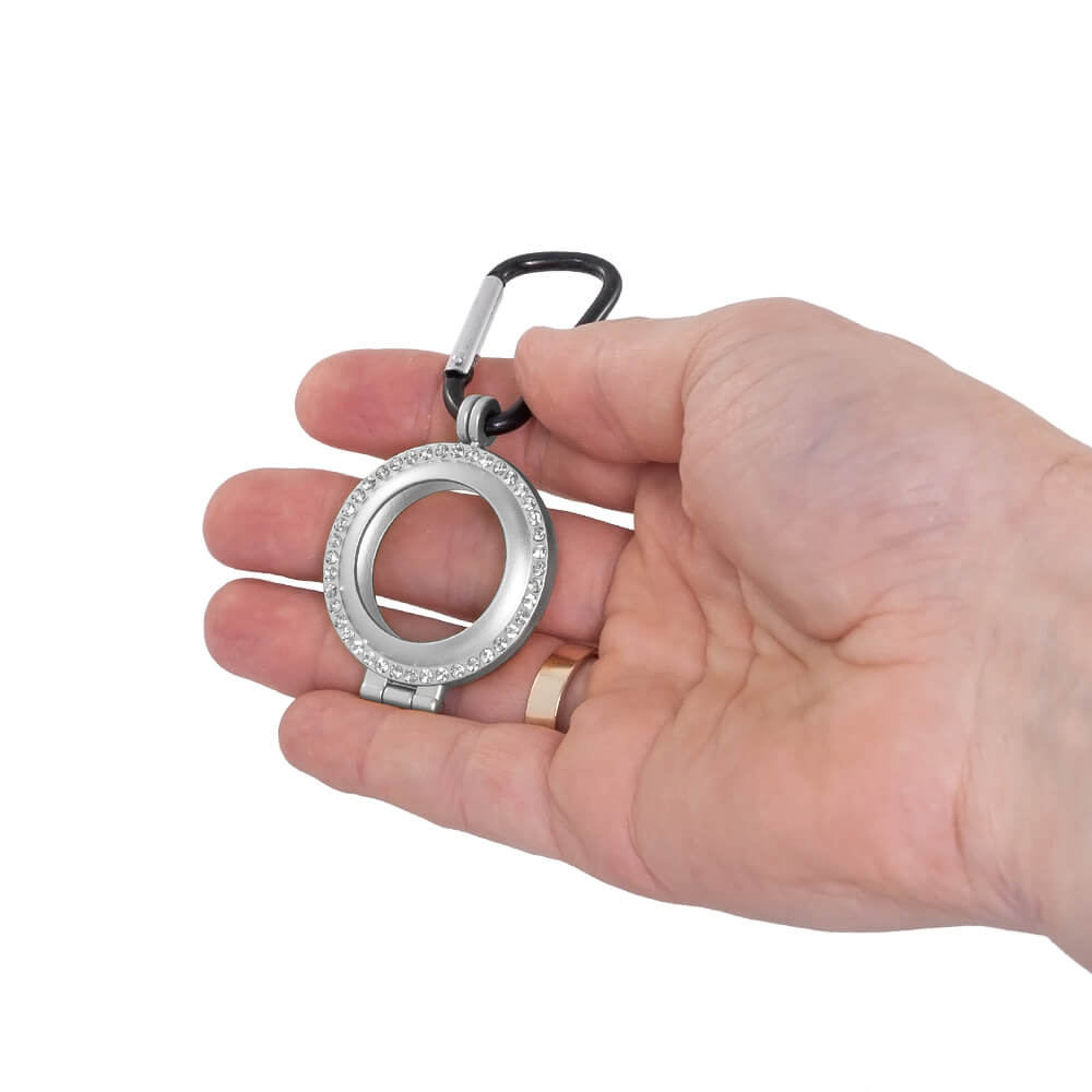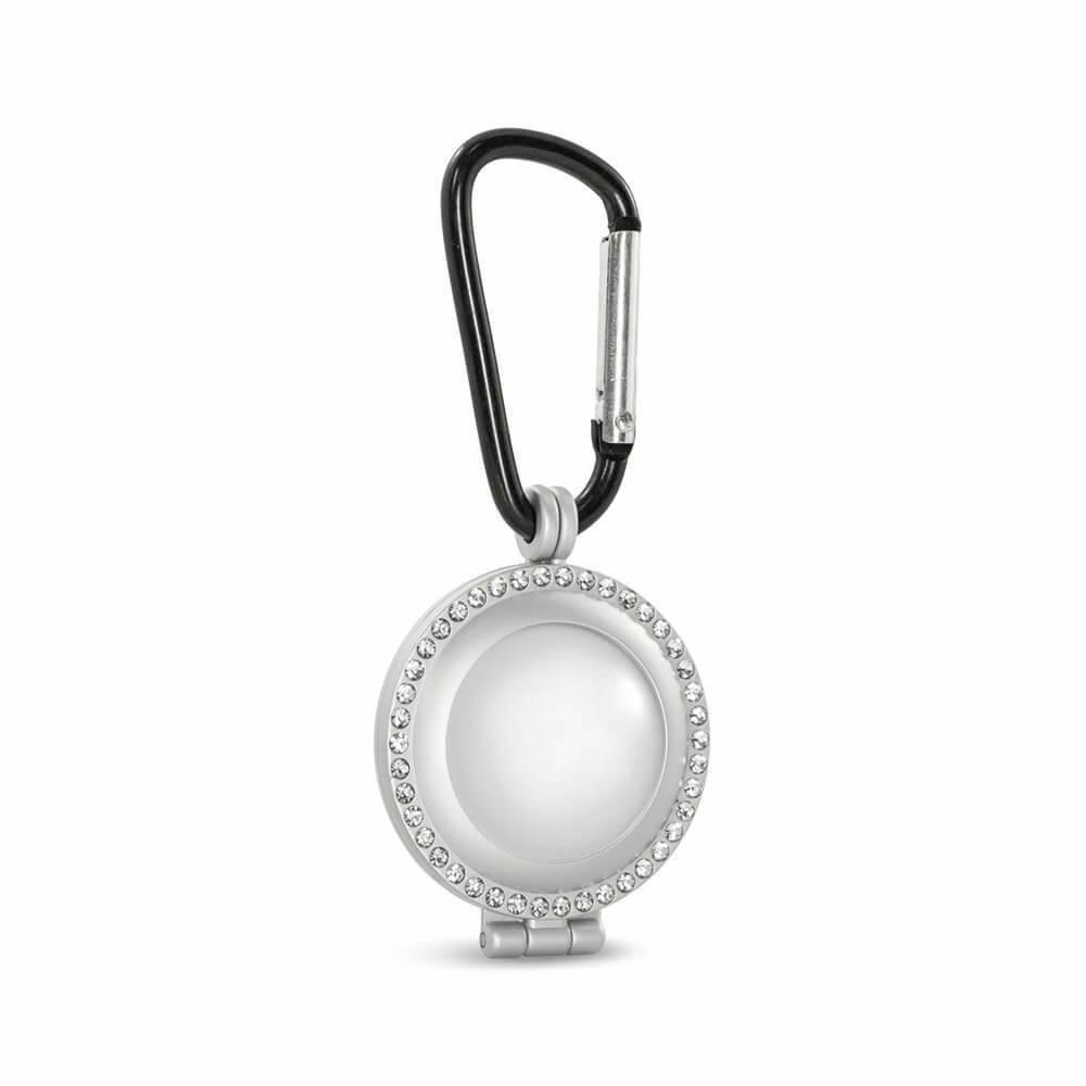- Метален кейс с кристали и карабинер, предназначен за Apple AirTag