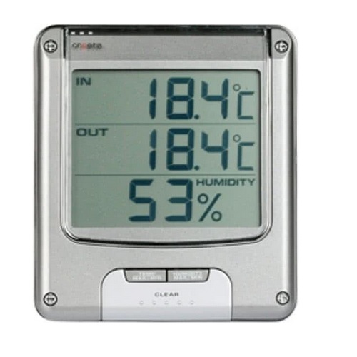 - Измерва вътрешна температура и влажност, както и външна температура (чрез 3-метров кабел, който се изважда навън)