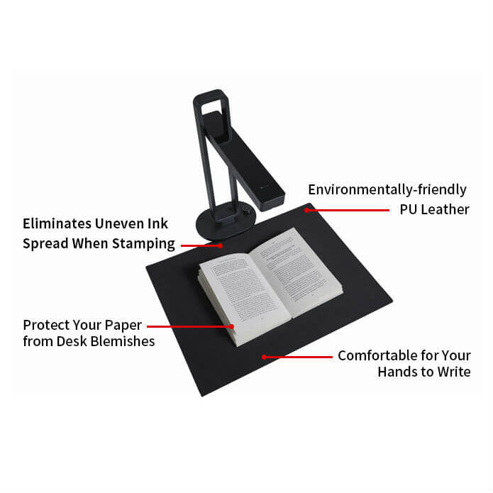 - Меката и гладка повърхност на подложката на бюрото предпазва от дефекти на бюрото, удобна е за писане и предотвратява разпространението на мастило при щамповане