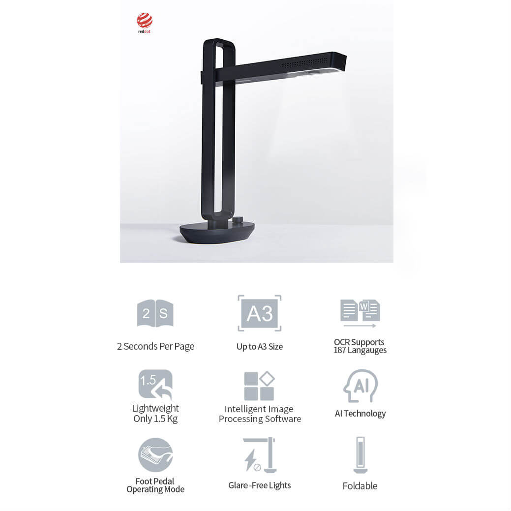 - Патентована технология - използва три прецизни лазерни линии за невероятна точност на сканиране и яснота на изображението. Това дава възможност на Aura да сканира и точно копира отделните страници на извити книги. Вградената в софтуера AI технология прави сканирането и обработката на изображения по-интелигентни и опростени