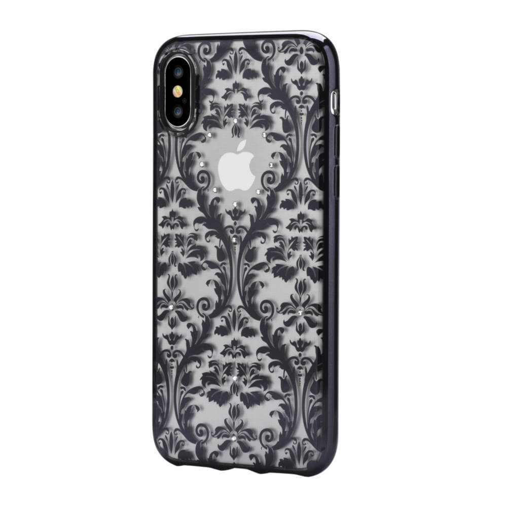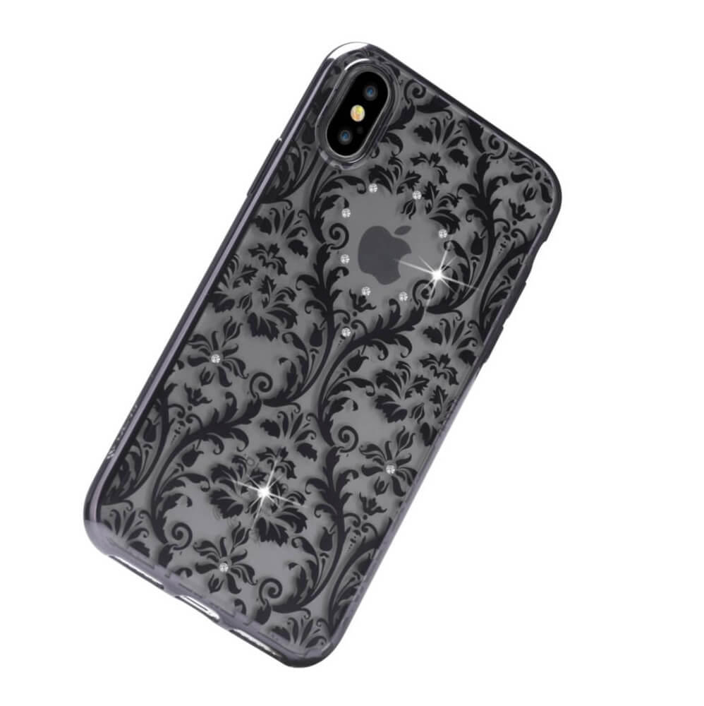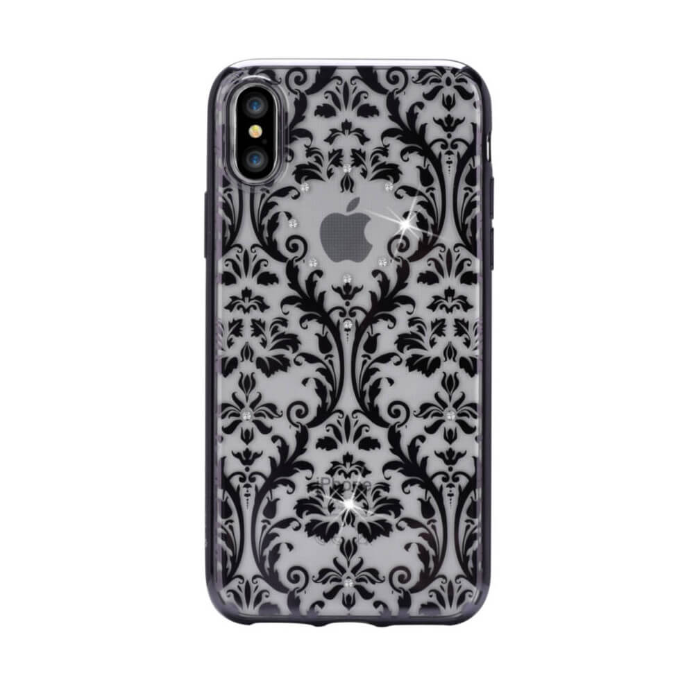 Devia Crystal Baroque Case - силиконов (TPU) калъф за iPhone XS, iPhone X (с кристали Сваровски) (черен)