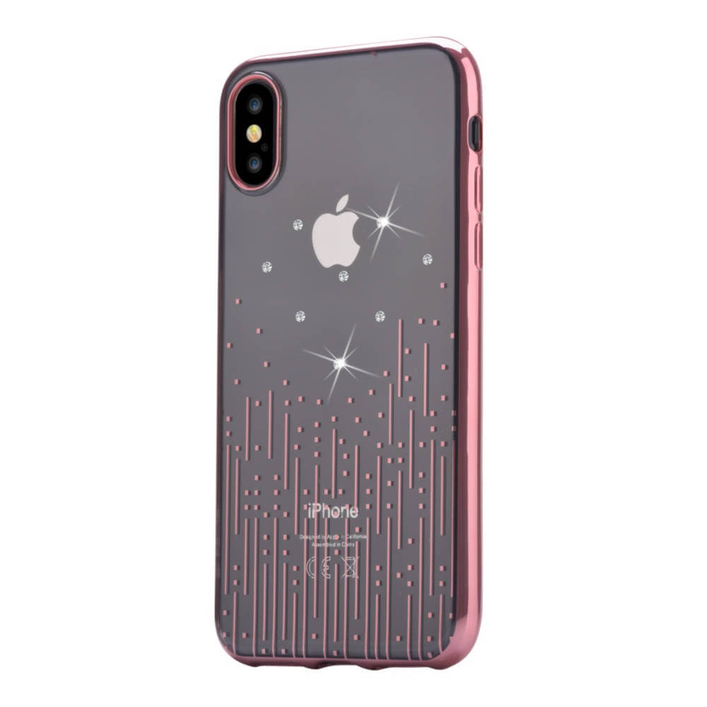 Devia Crystal Meteor Case - силиконов (TPU) калъф за iPhone XS, iPhone X (с кристали Сваровски) (розово злато)