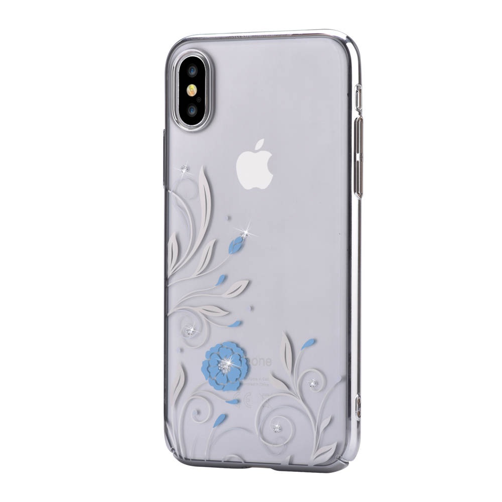 Devia Crystal Petunia Case - поликрабонатов кейс за iPhone XS, iPhone X (с кристали Сваровски) (сребрист)