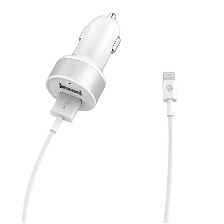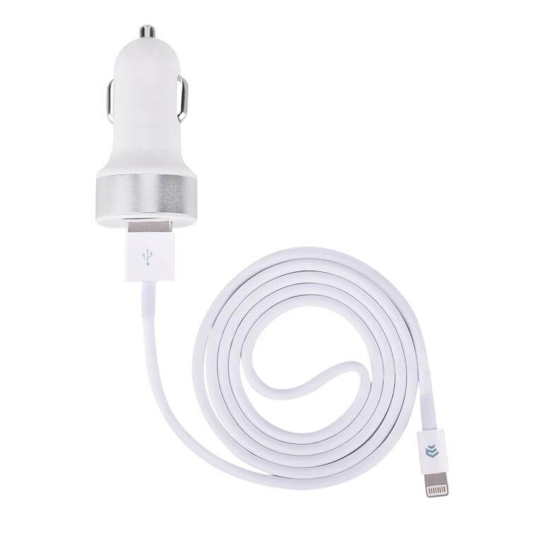 § Качествено зарядно за кола, което разполага с два USB изхода и отделен Lightning кабел
