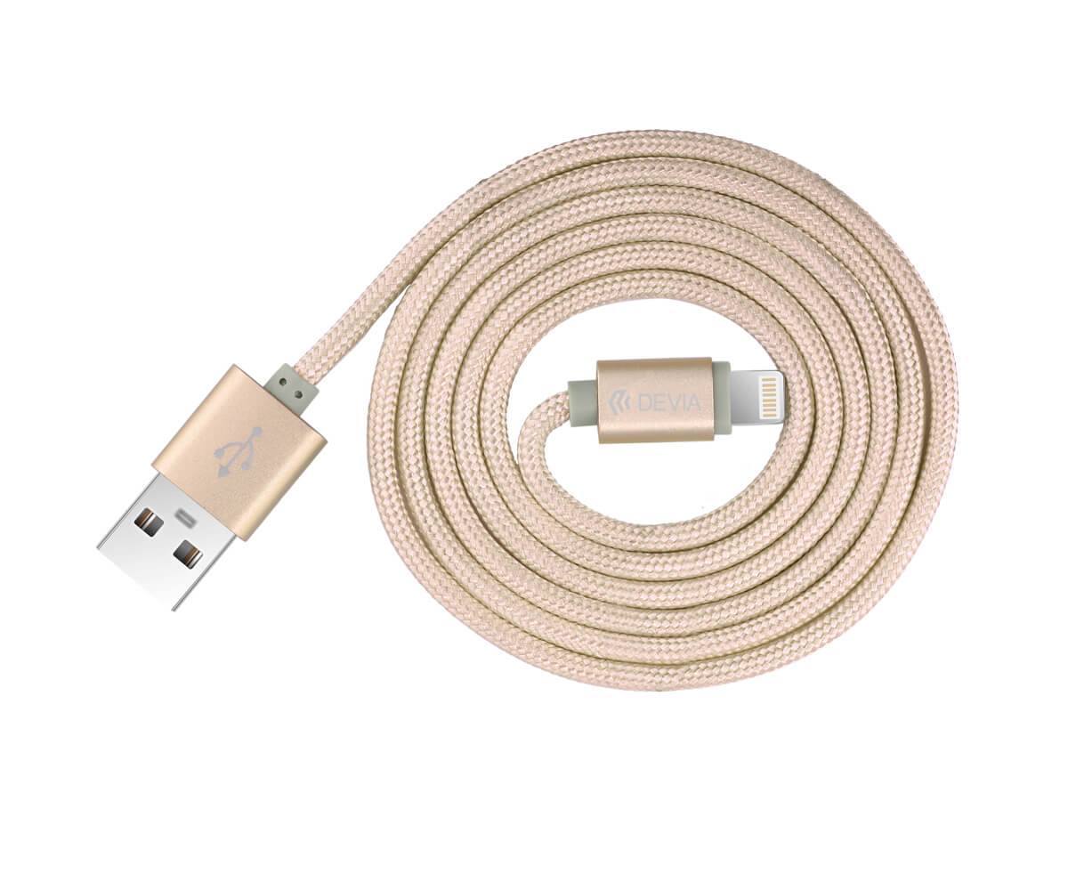 Devia Fashion MFI Lightning Data Cable 2m. - сертифициран плетен lightning кабел (200см.) за iPhone, iPad и iPod с Lightning вход (златист)