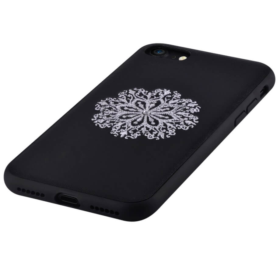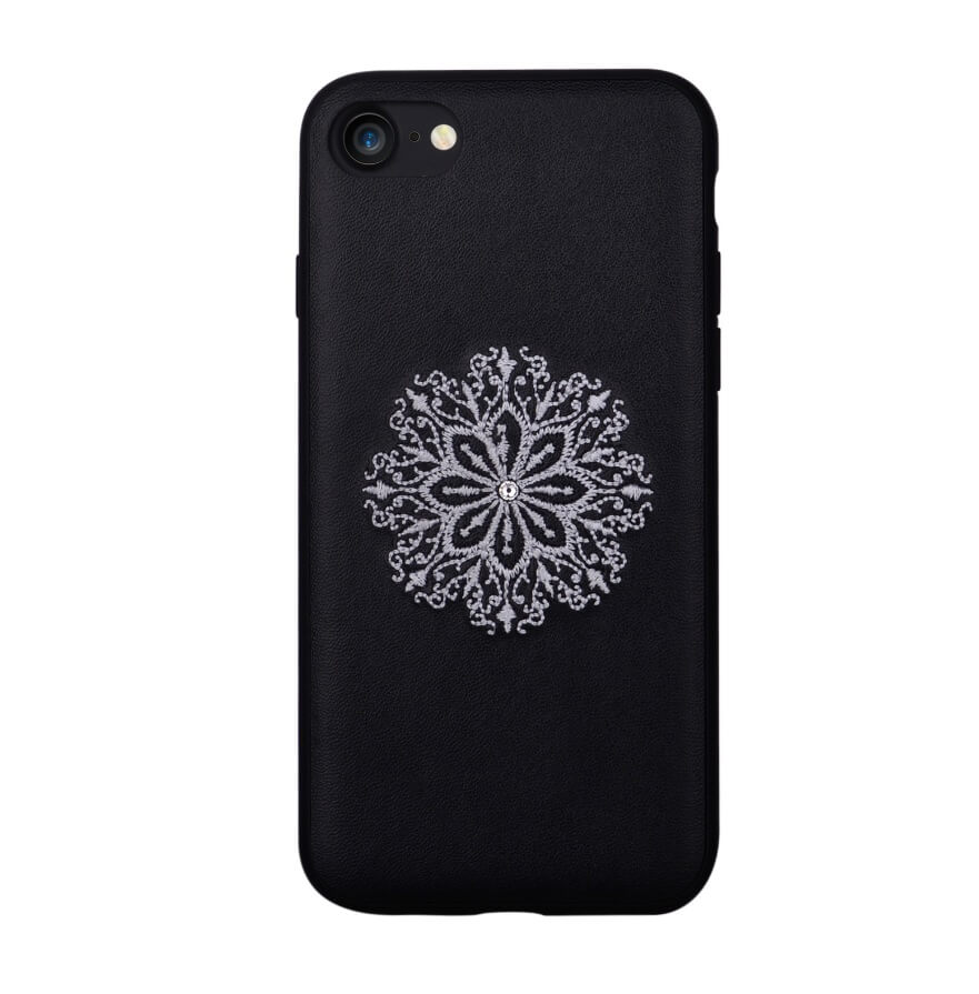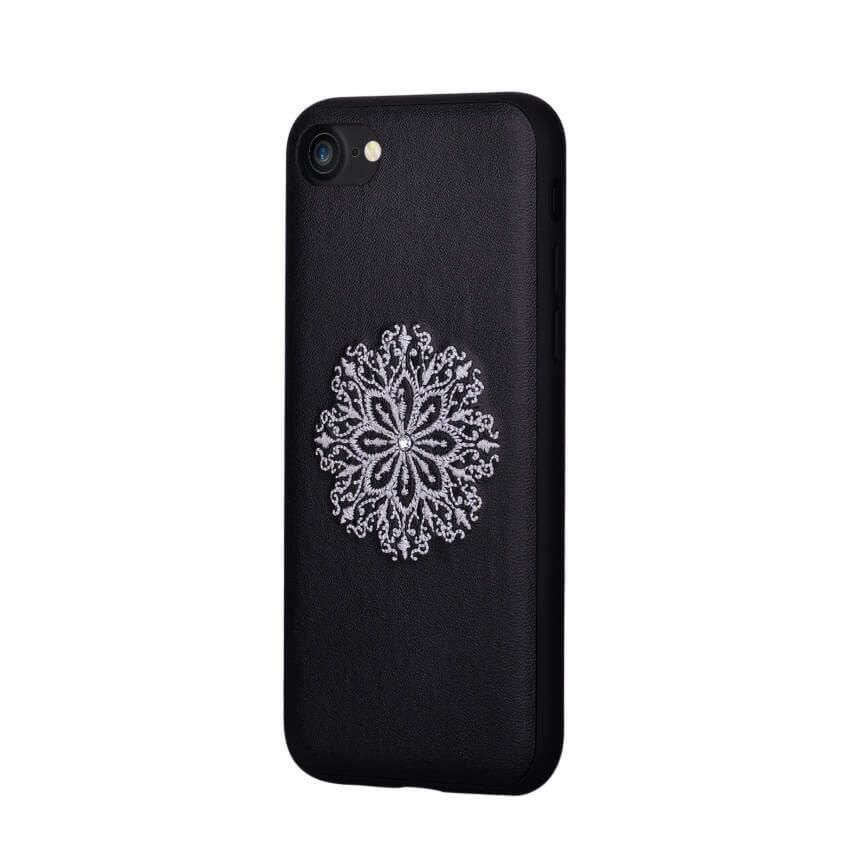 Devia Flower Embroidery Case - дизайнерски кожен кейс с ръчна бродерия за iPhone 8, iPhone 7 (черен)
