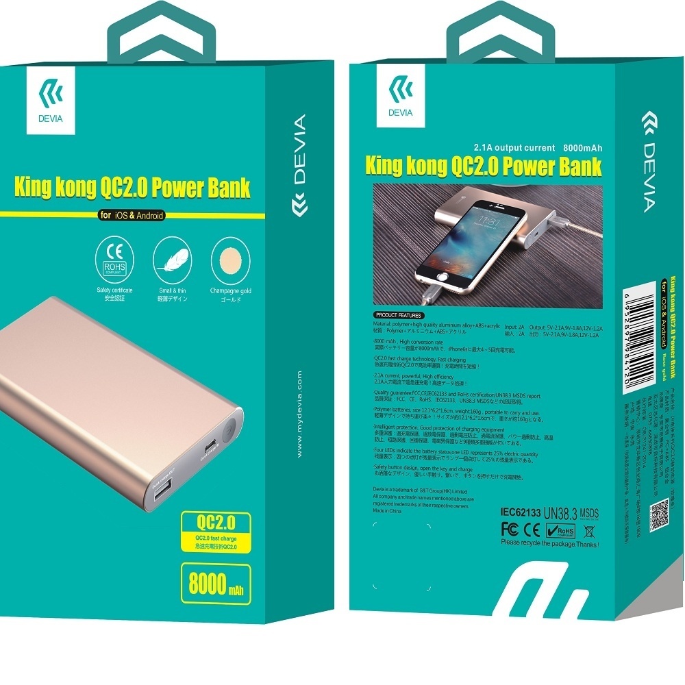 Devia King Kong QC2.0 Power Bank 8000 mAh - външна батерия за бързо зареждане (Quick Charge 2.0) за мобилни устройства (златист)