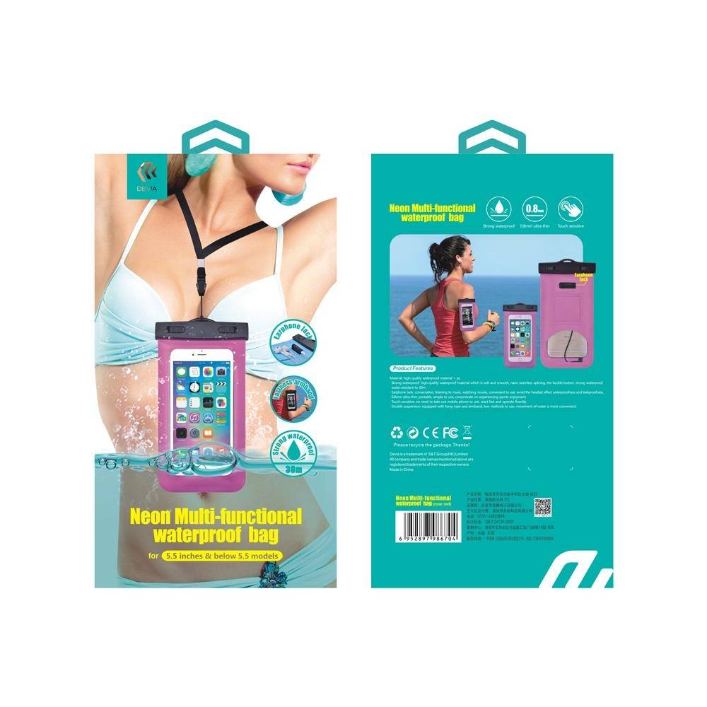 § Devia Neon Waterproof Bag е универсален водоустойчив калъф за телефони с големина до 158.2 x 77.9 x 7.3 мм