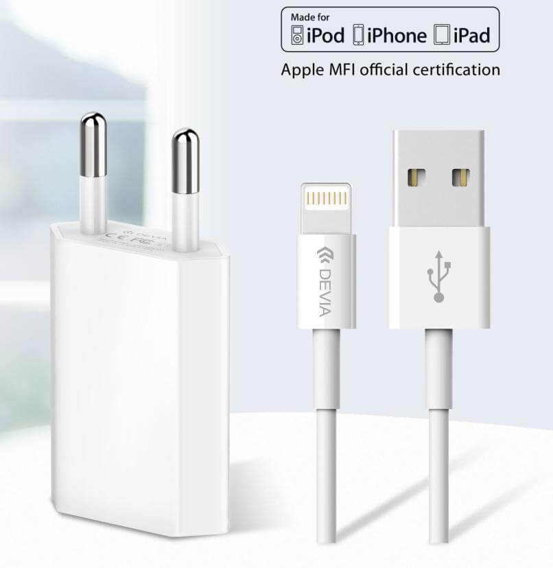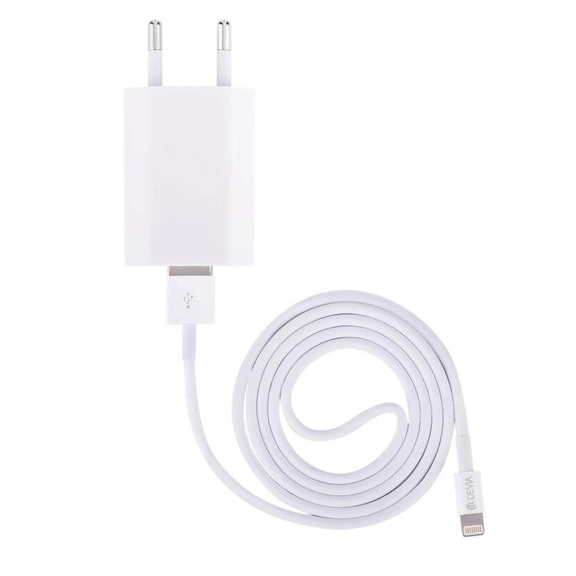 Devia Smart Charger MFI Lightning Suit - захранване за ел. мрежа с USB изход и Lightning кабел за iPhone, iPad и устройства с Lightning порт