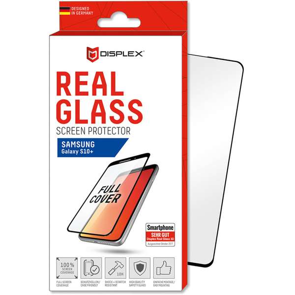 Displex Real Glass 10H Protector 3D Full Cover No Fingerprint - калено стъклено защитно покритие без поддръжка на сензора за отпечатъци за дисплея на Samsung Galaxy S10 Plus (черен-прозрачен)