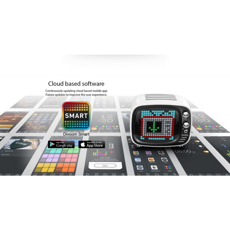 - Със стилен ретро-TV дизайн и интересен набор от функции, Tivoo е идеалното съчетание на носталгия и иновации. Разполага с 360-градуов звук, подобрени баси и множество интелигентни функции, включително пиксел арт, уведомления, интелигентни аларми и много други