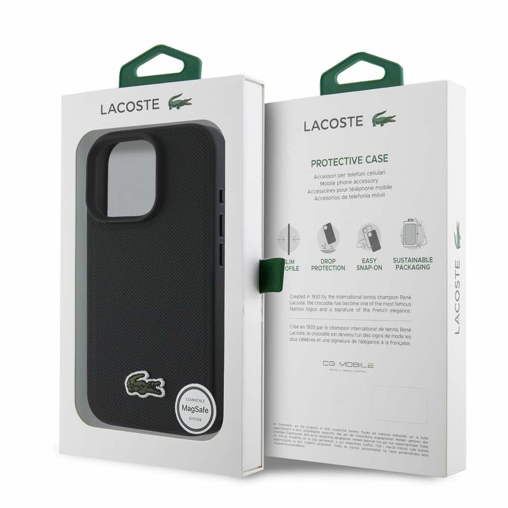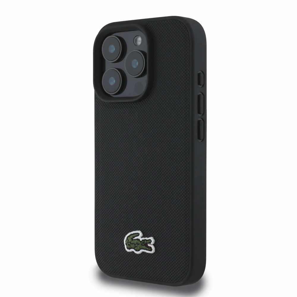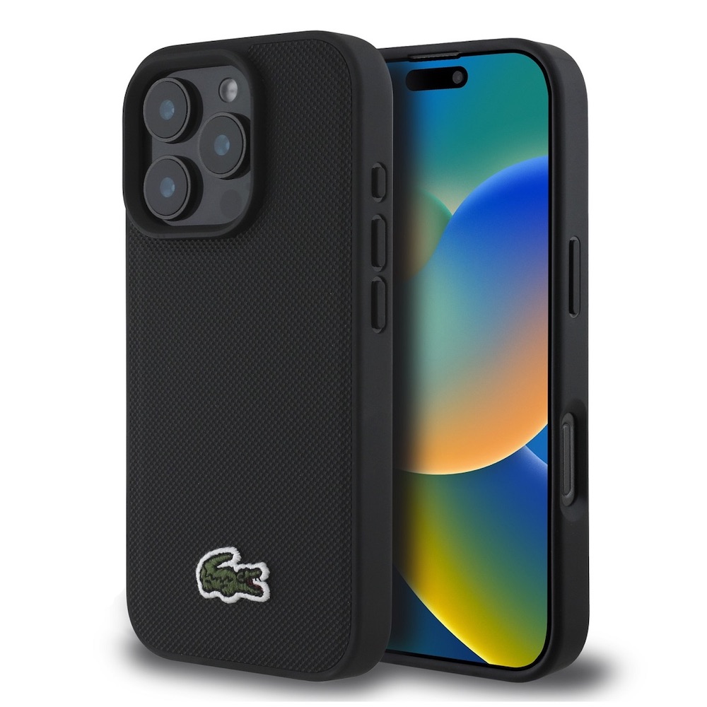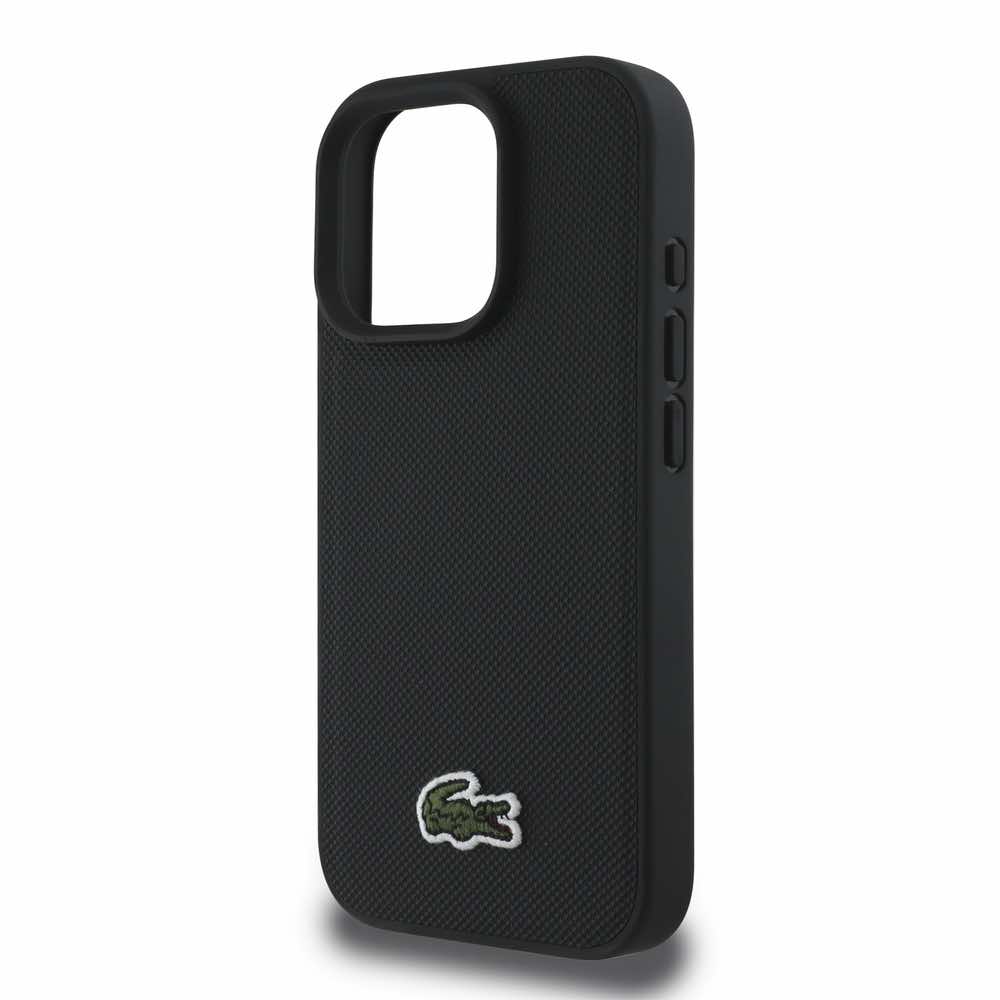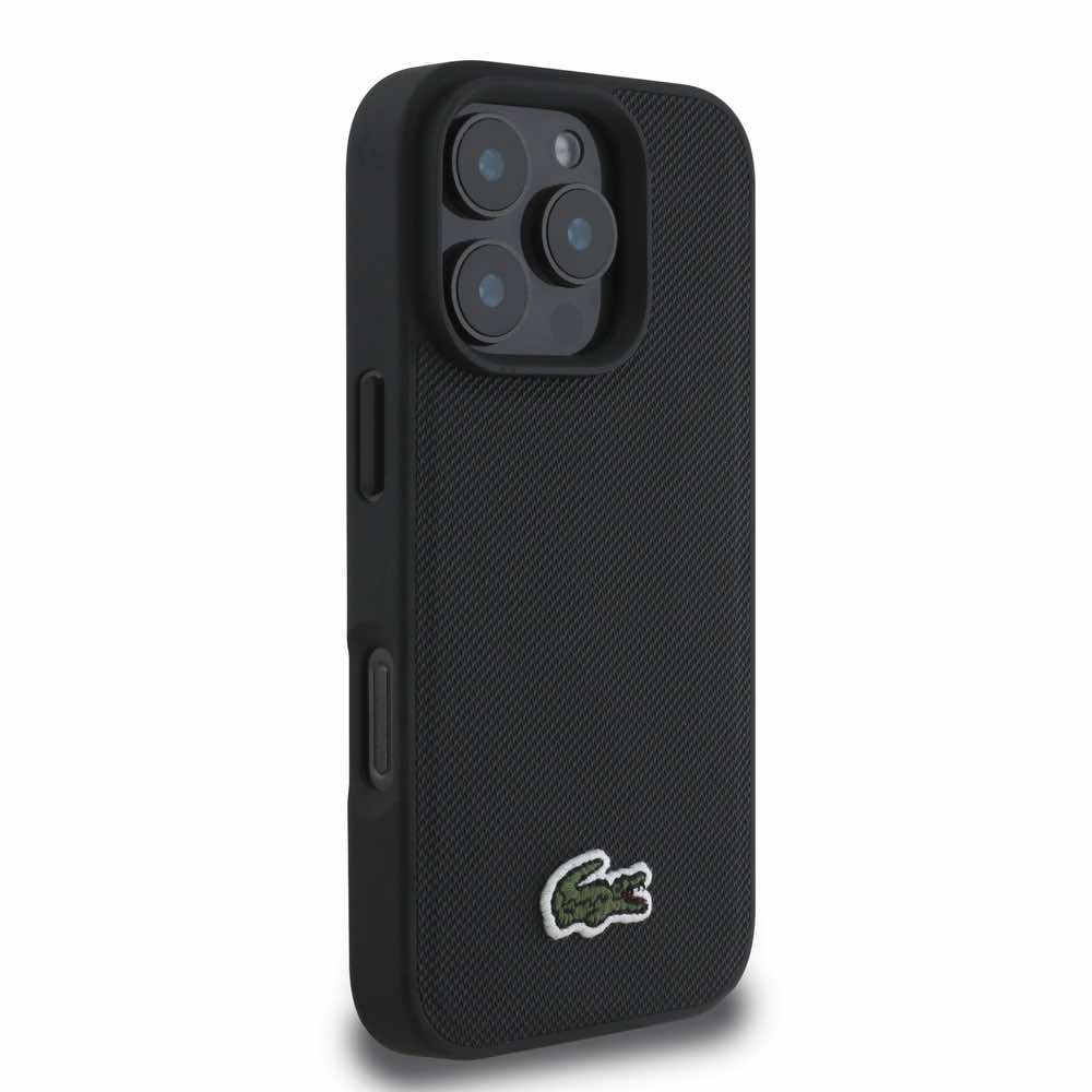 Дизайнерски кожен кейс с MagSafe за iPhone 16 Pro Max - Lacoste Iconic Petit Pique Woven Logo MagSafe Case (черен)